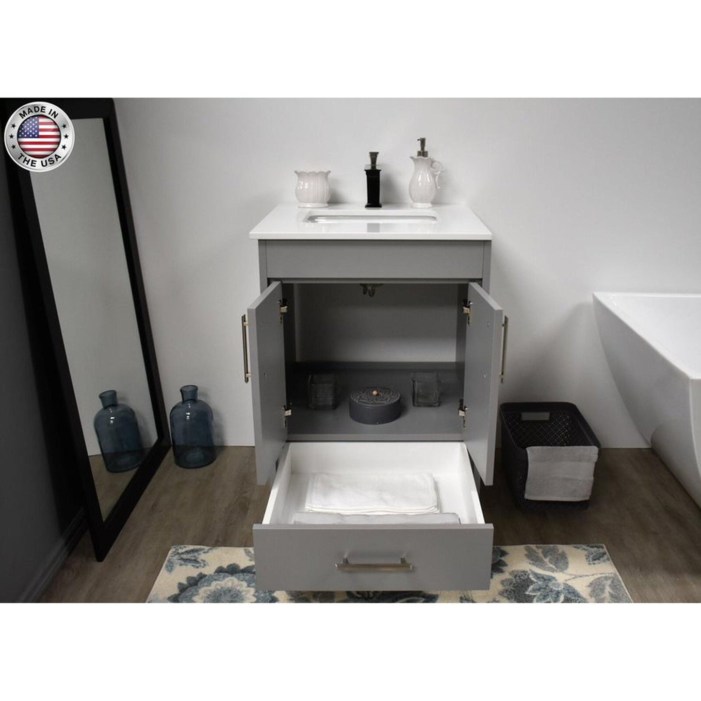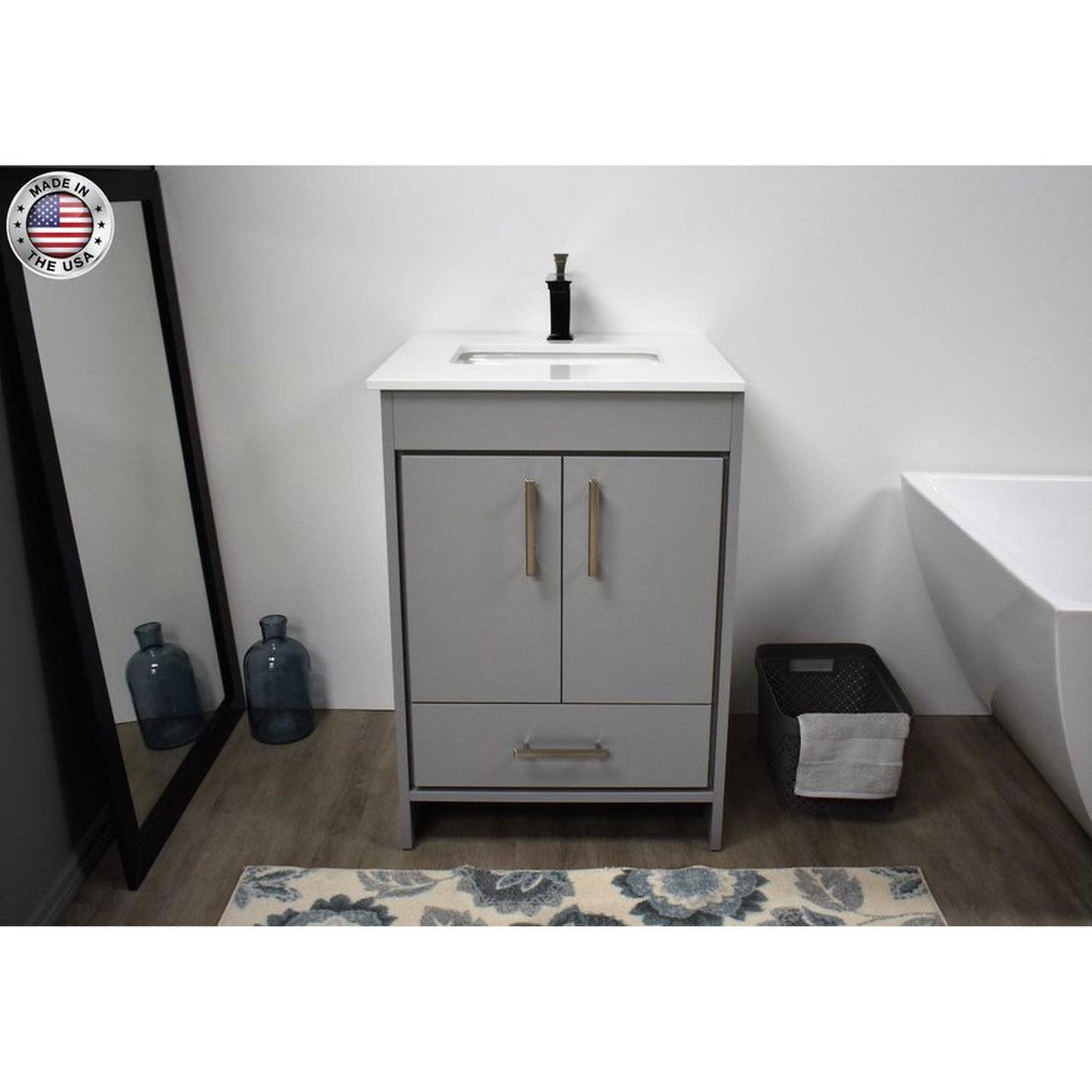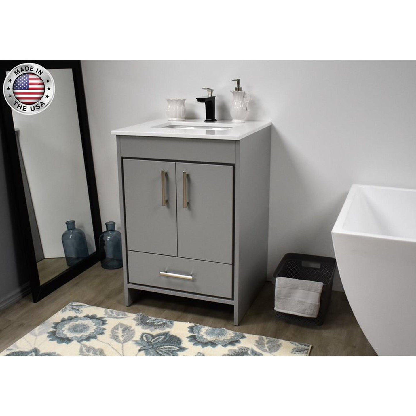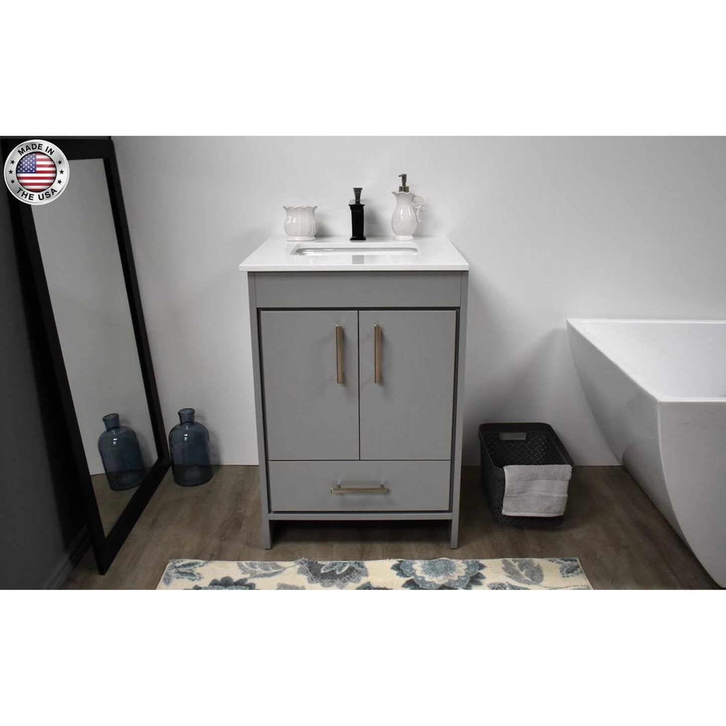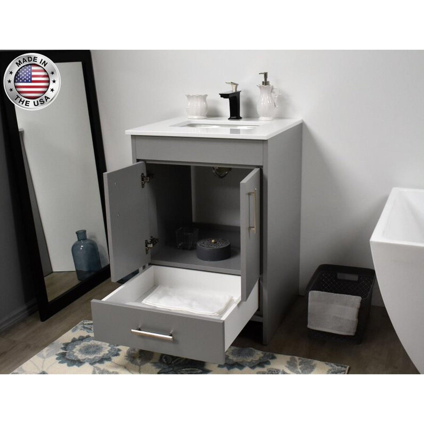 Volpa USA Capri 24" x 22" Gray Freestanding Modern Bathroom Vanity With Preinstalled Undermount Sink And White Microstone Top With Brushed Nickel Edge Handles