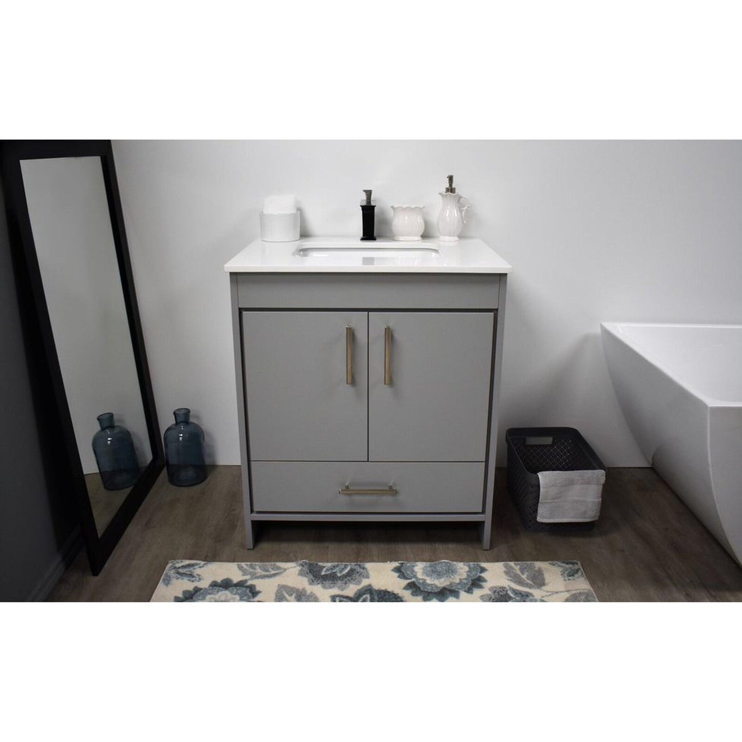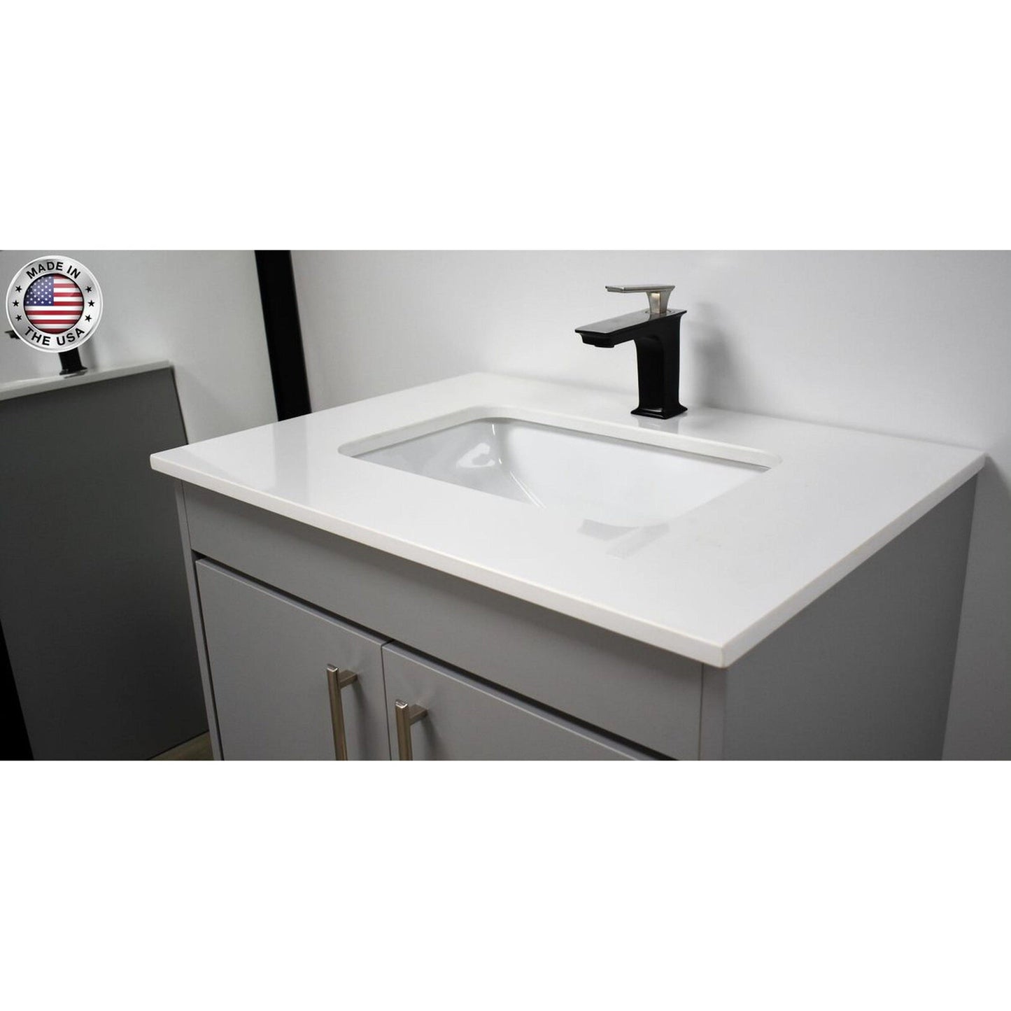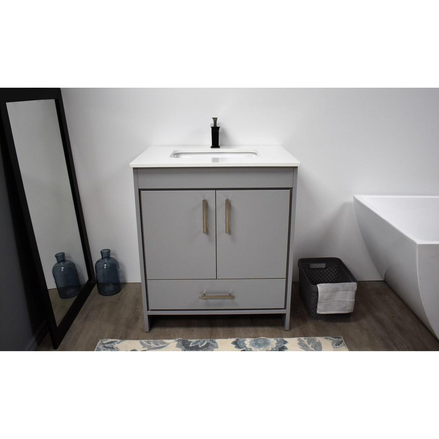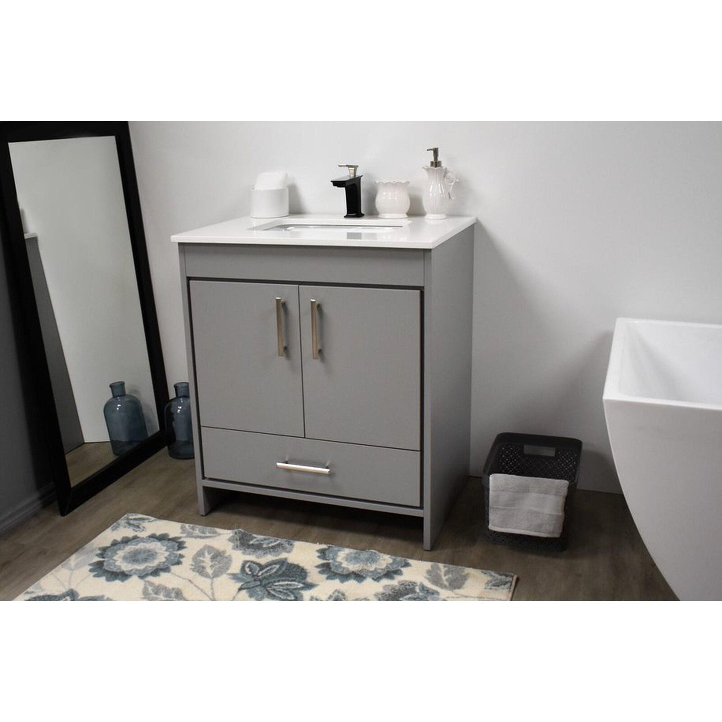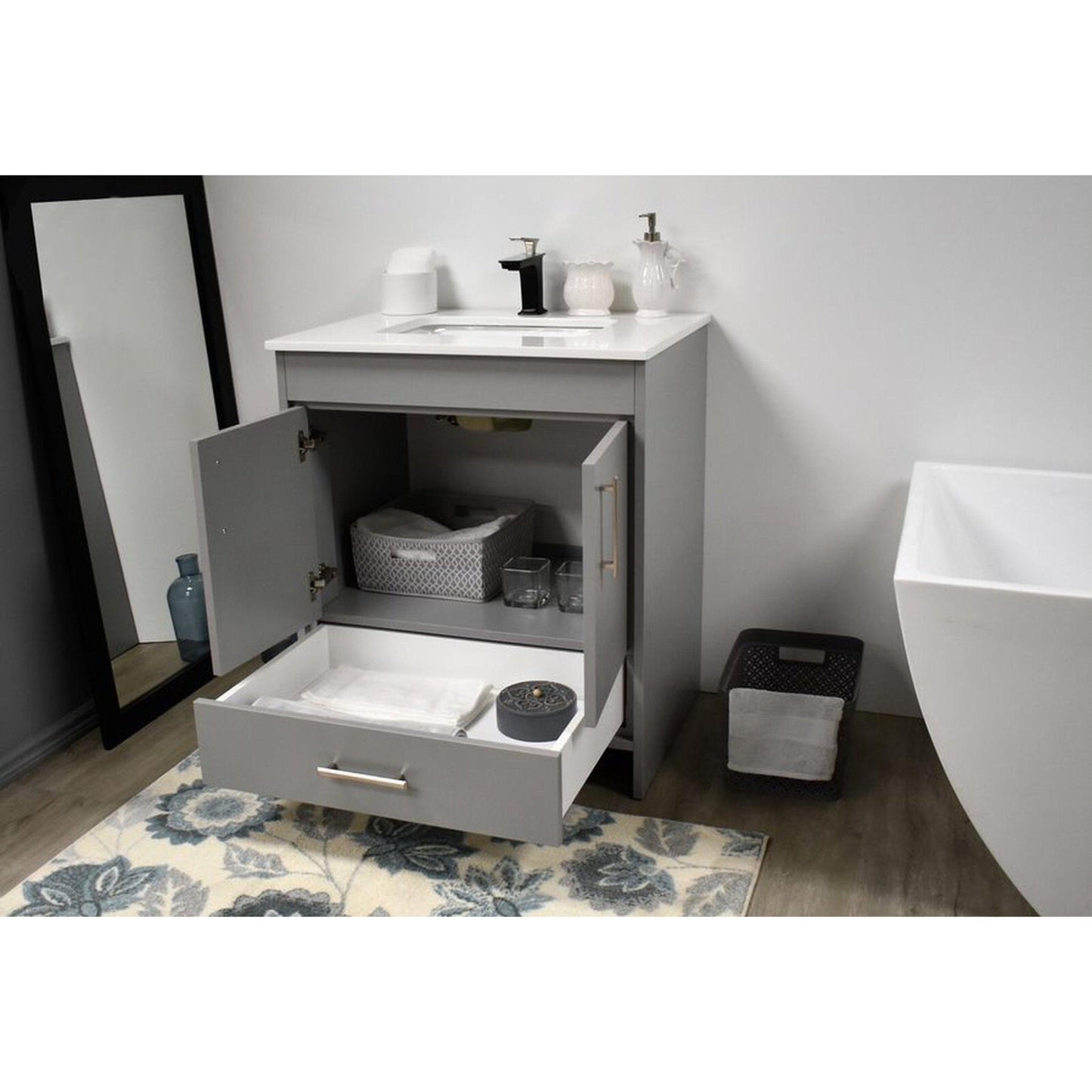 Volpa USA Capri 24" x 22" Gray Freestanding Modern Bathroom Vanity With Preinstalled Undermount Sink And White Microstone Top With Brushed Nickel Edge Handles