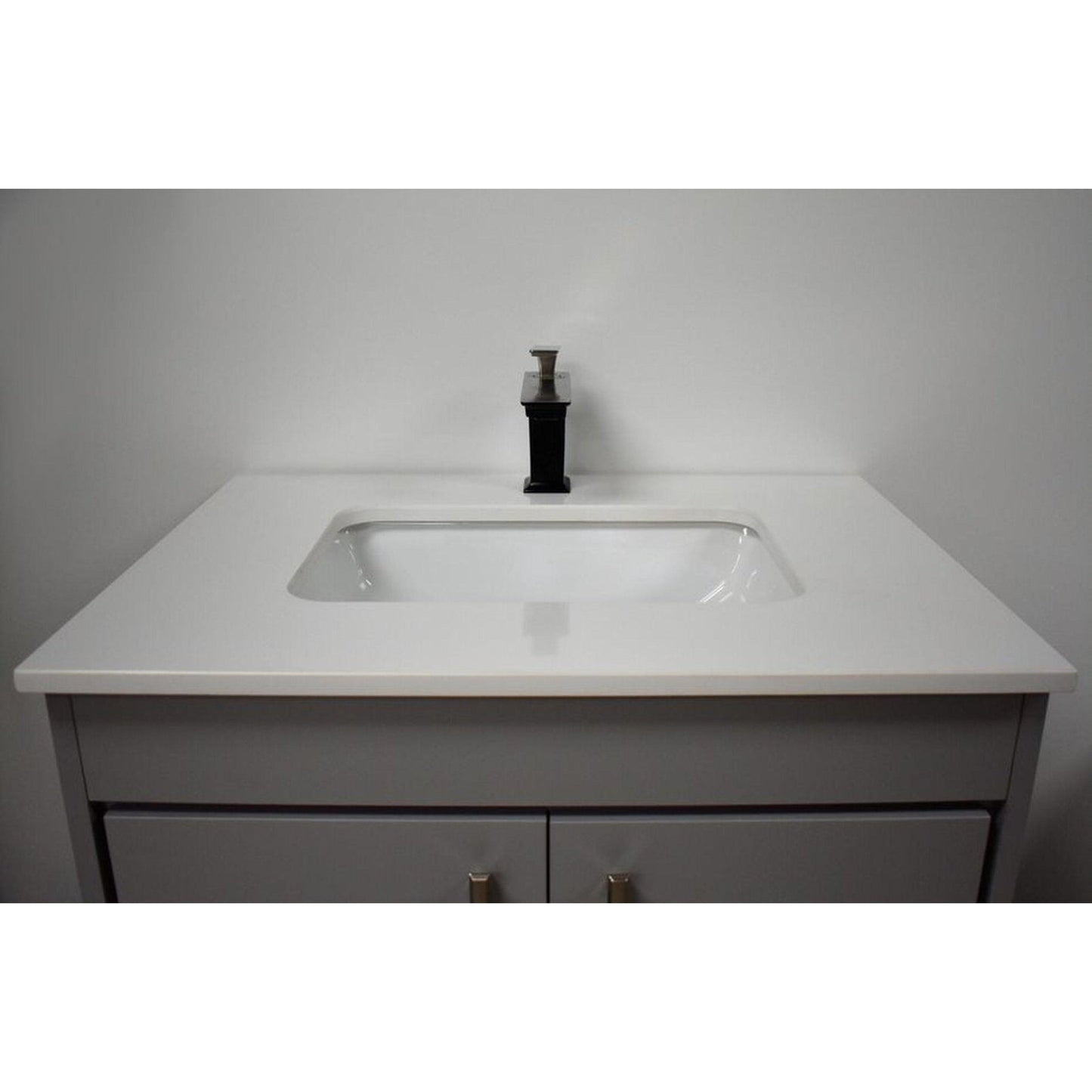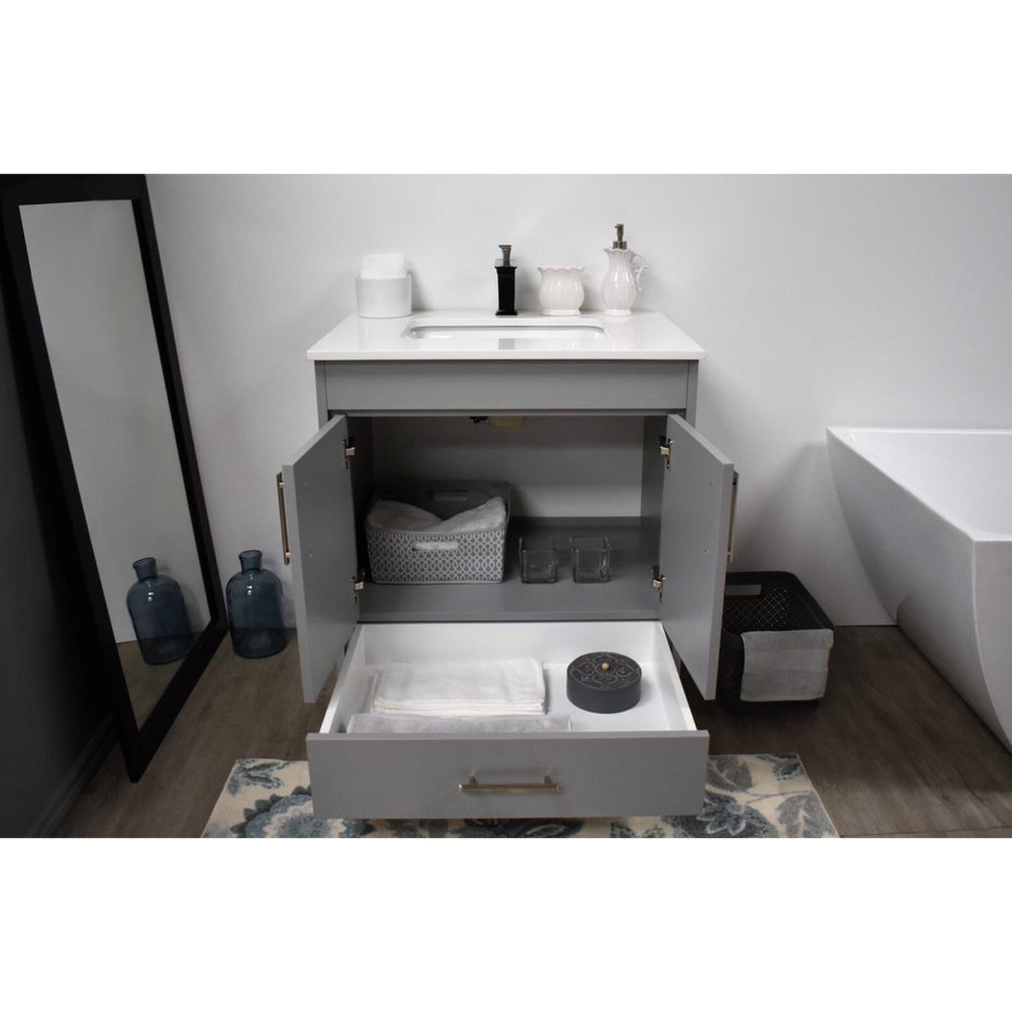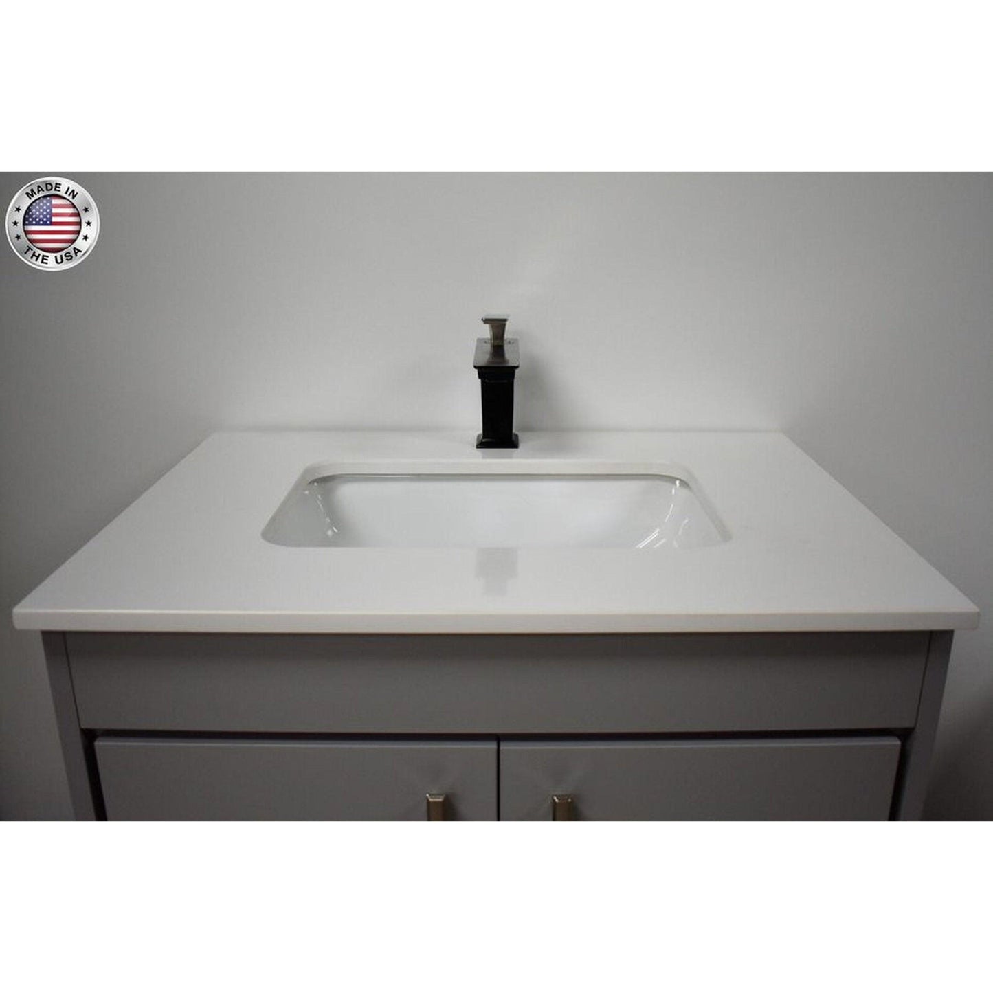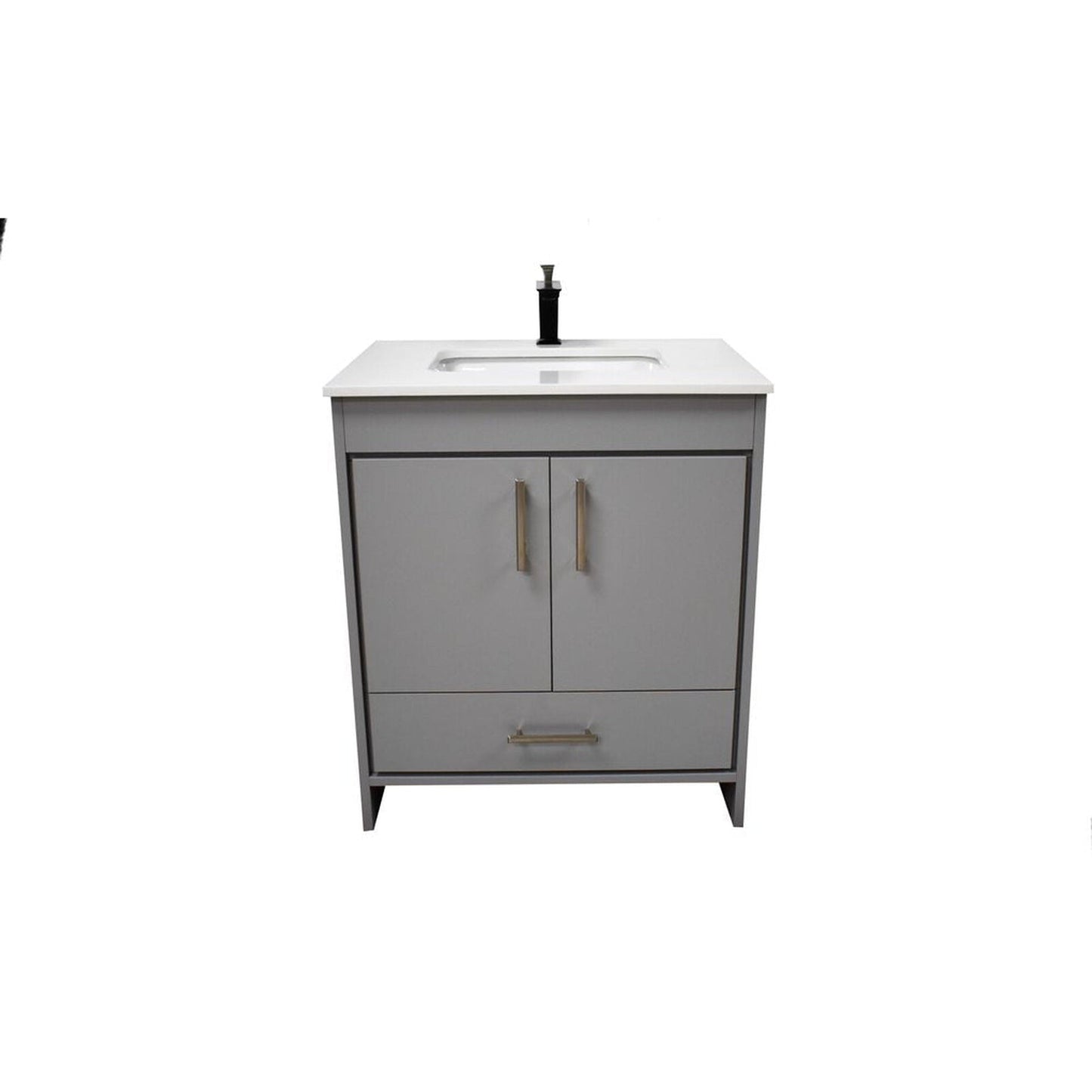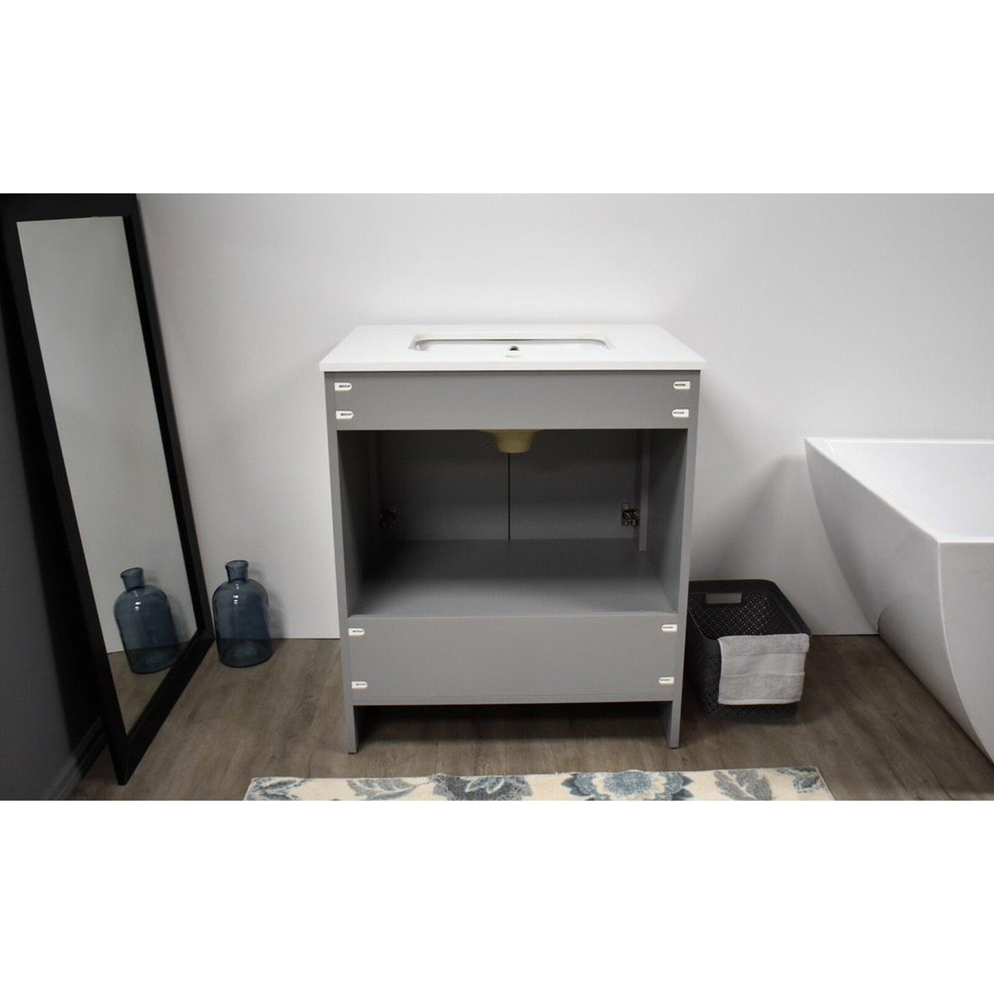 Volpa USA Capri 24" x 22" Gray Freestanding Modern Bathroom Vanity With Preinstalled Undermount Sink And White Microstone Top With Brushed Nickel Edge Handles
