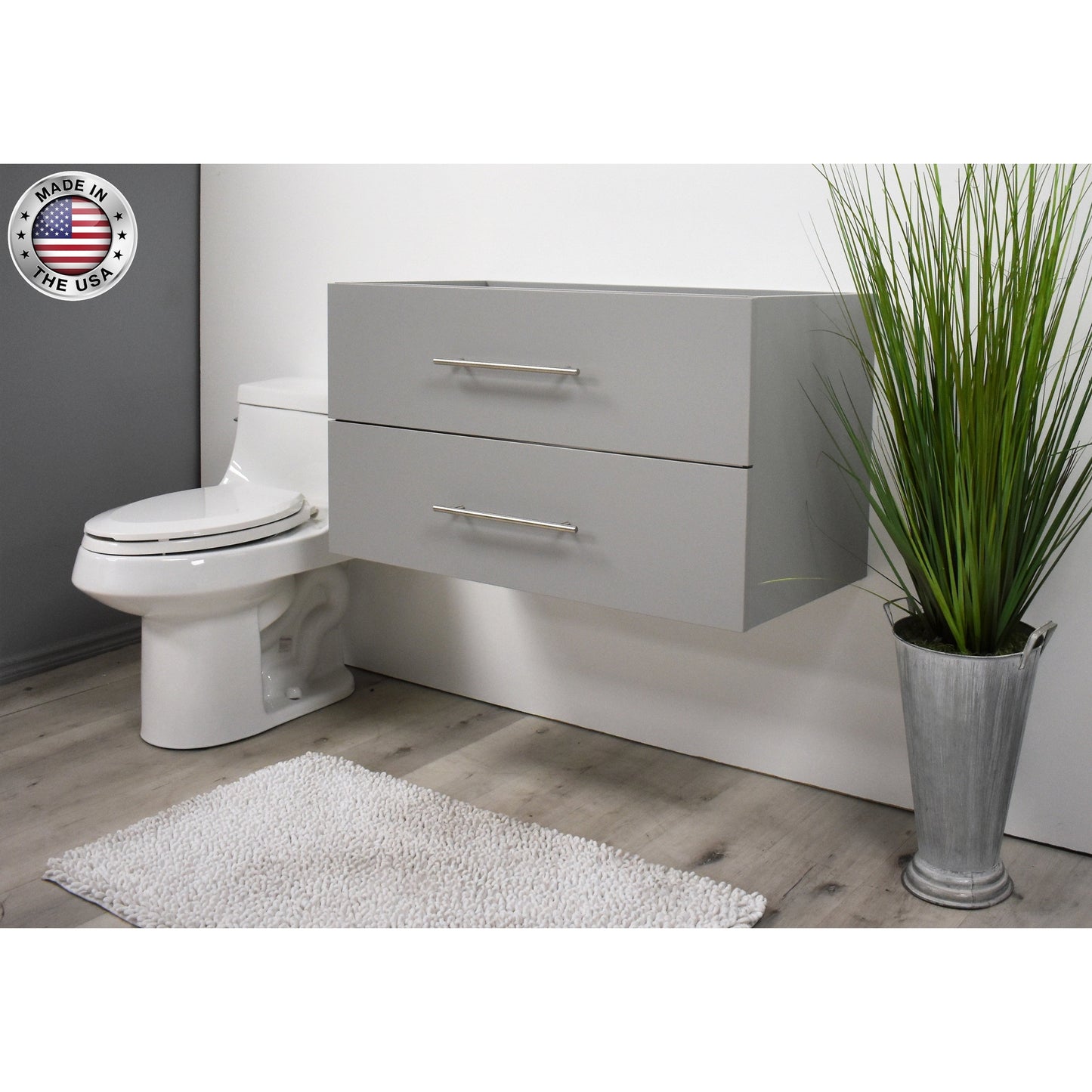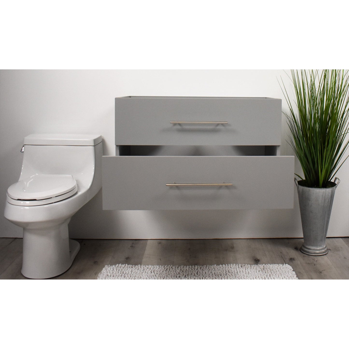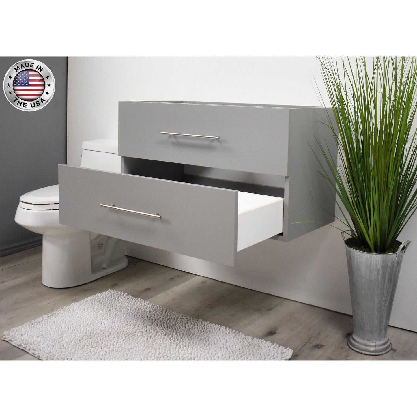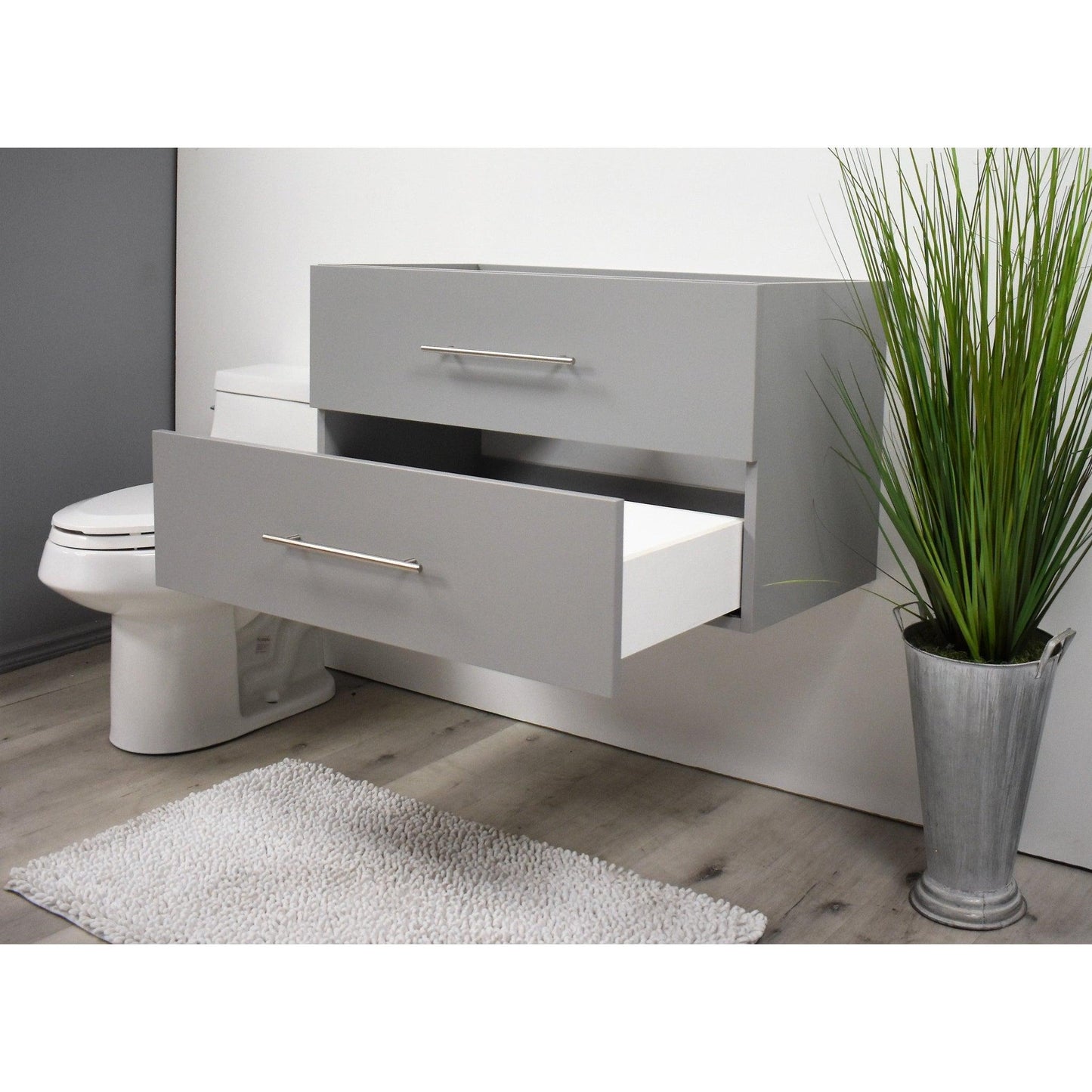 Volpa USA Napa 36" Grey Wall-Mounted Floating Modern Bathroom Vanity With Satin Nickel Round Handles