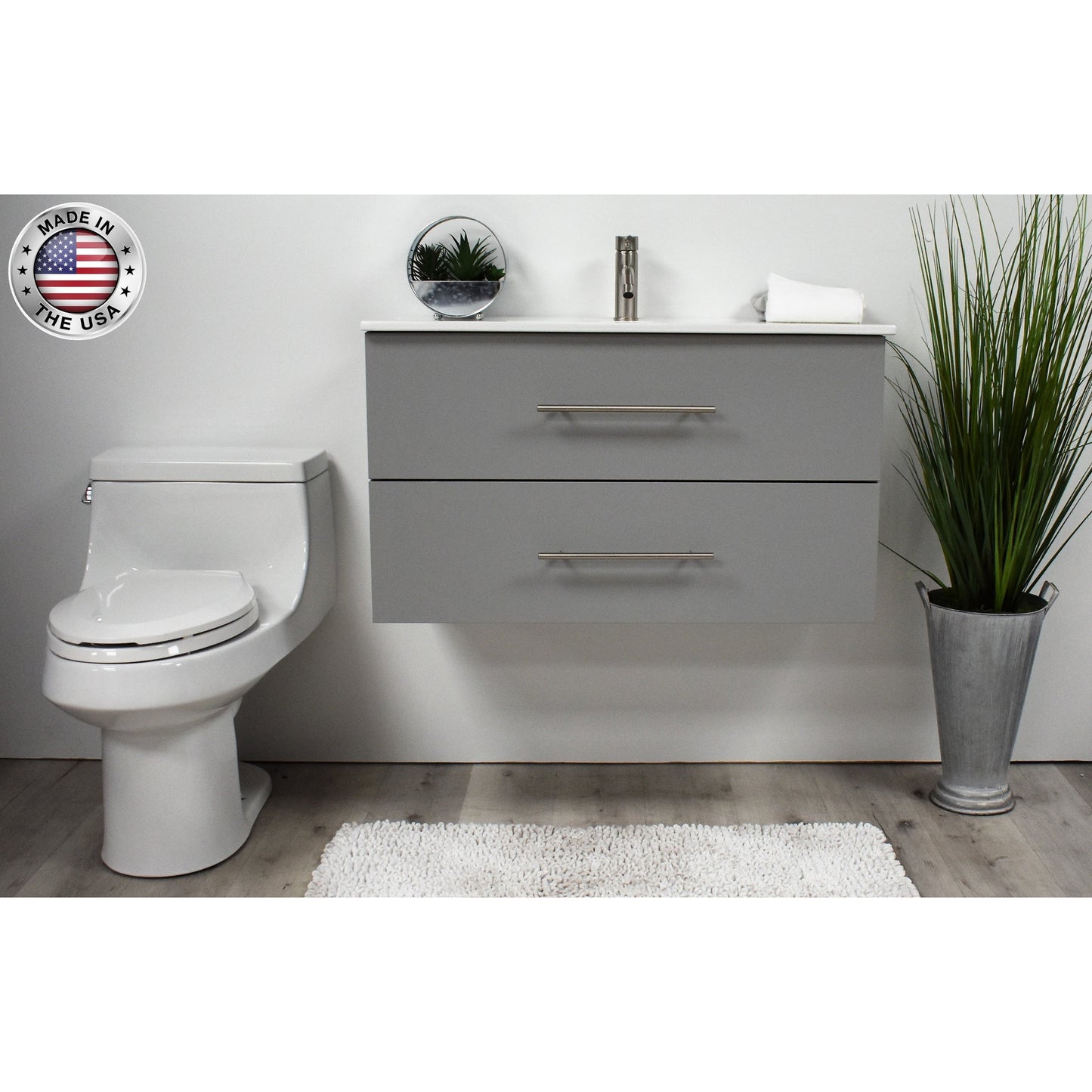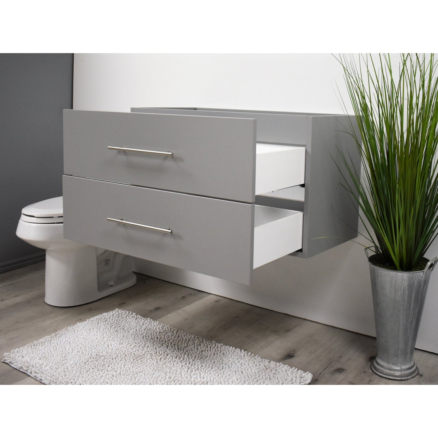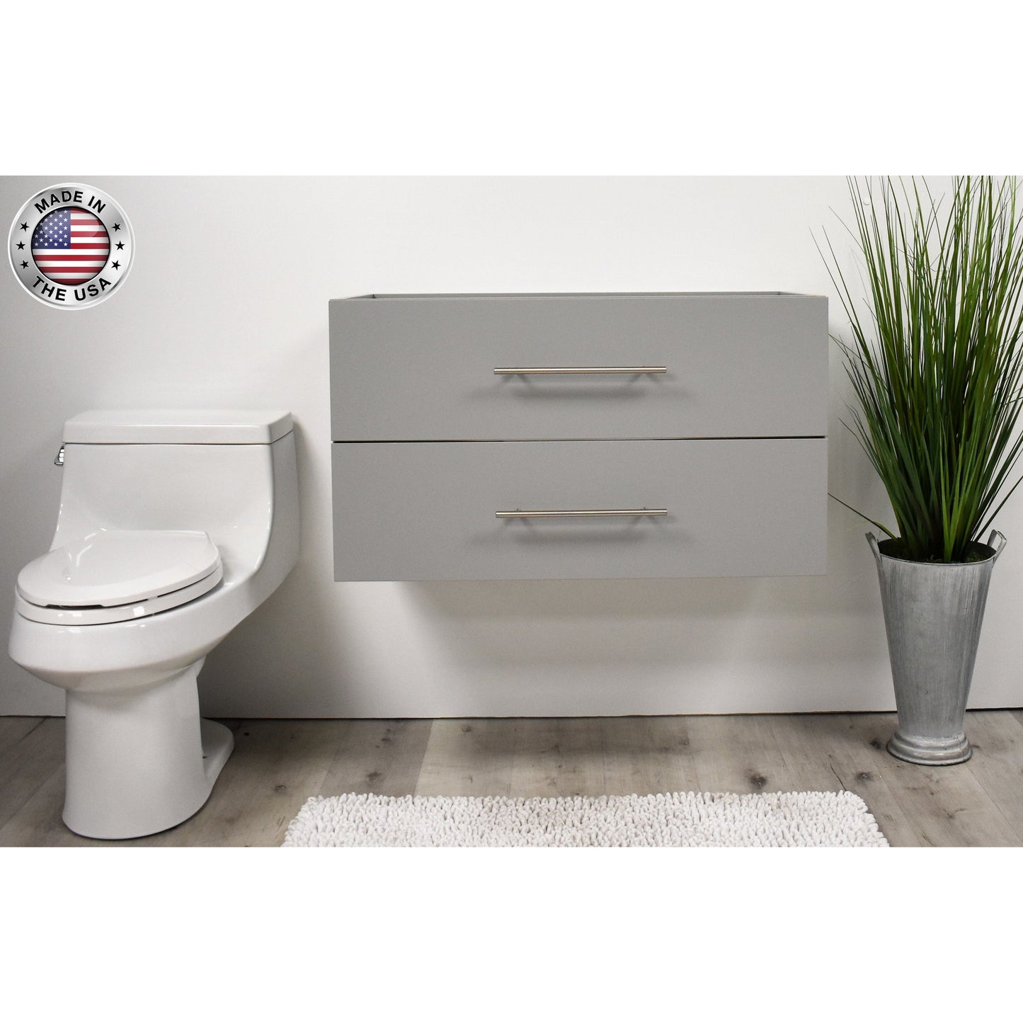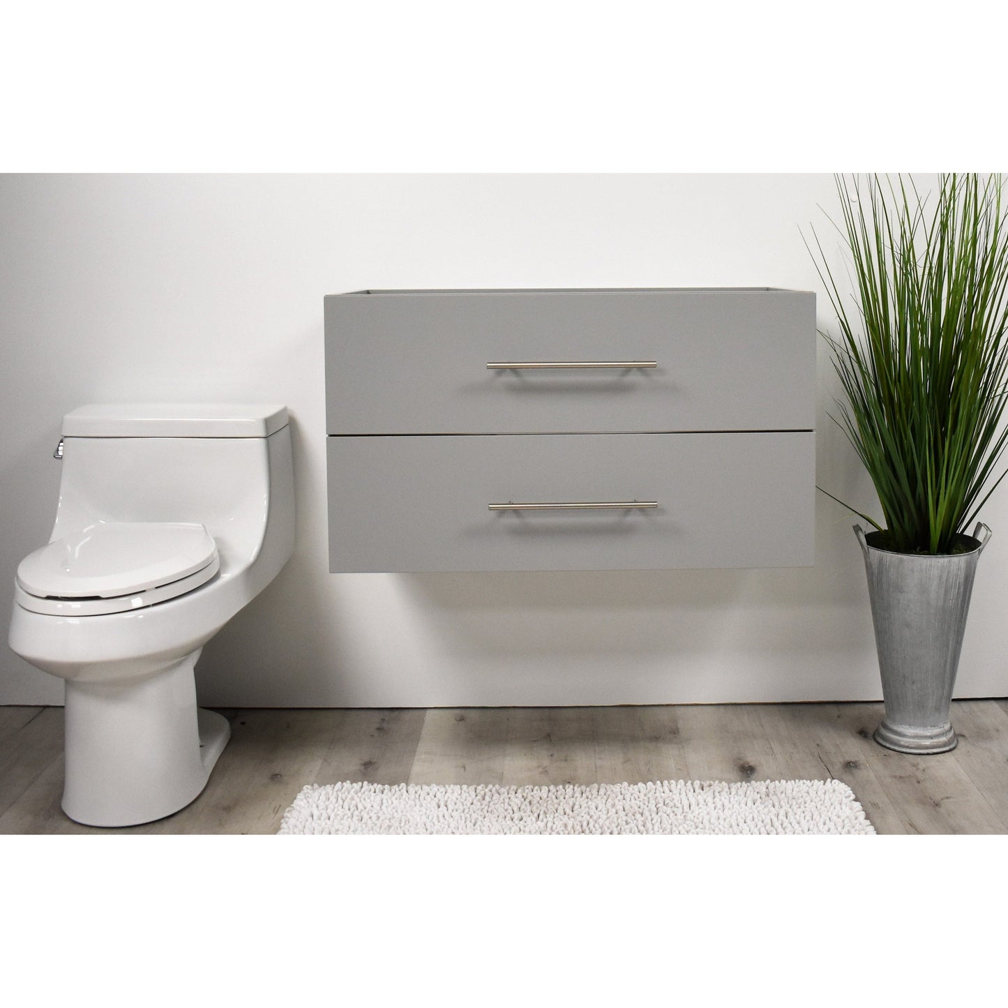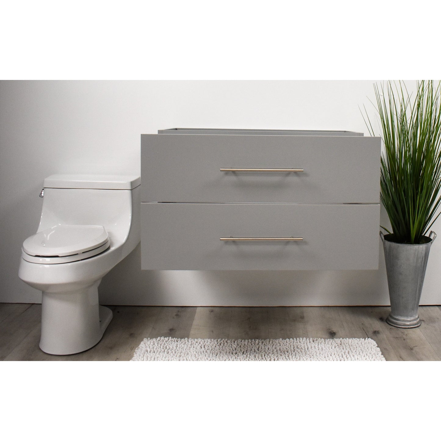 Volpa USA Napa 36" Grey Wall-Mounted Floating Modern Bathroom Vanity With Satin Nickel Round Handles