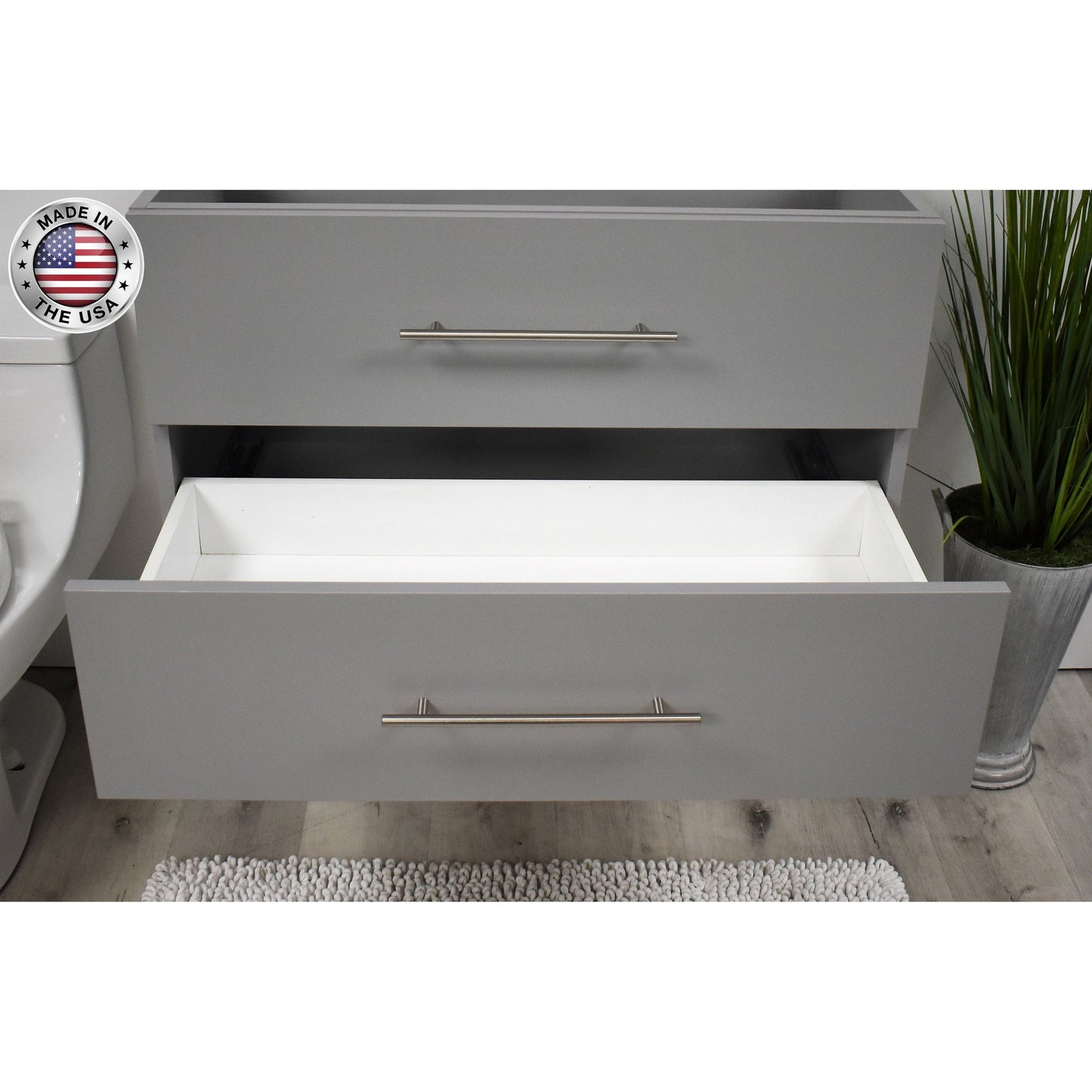 Quality-crafted and proudly made in the USA, the Napa wall mount collection built for extra durability and low maintenance, the cabinet’s clean lines and sophisticated profile are accentuated with a premium Canadian manufactured wood frame, soft-close glides, and full-size satin nickel hardware.