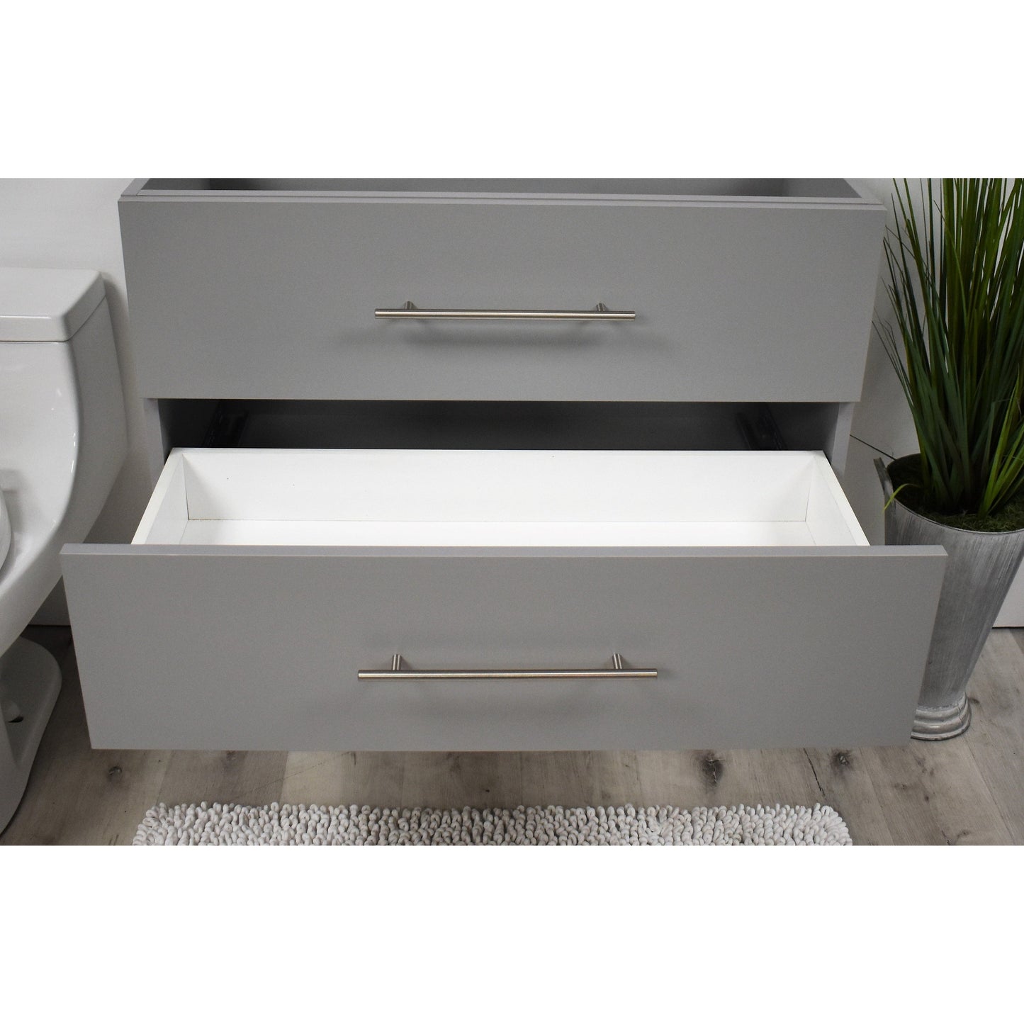 You have plenty of storage space with two drawers and three compartments. The top drawer maximizes storage space by concealing two usable compartments. A perfect choice for your renovation, the Napa will fit your bathroom’s modern design and create a fresh look for your home.
