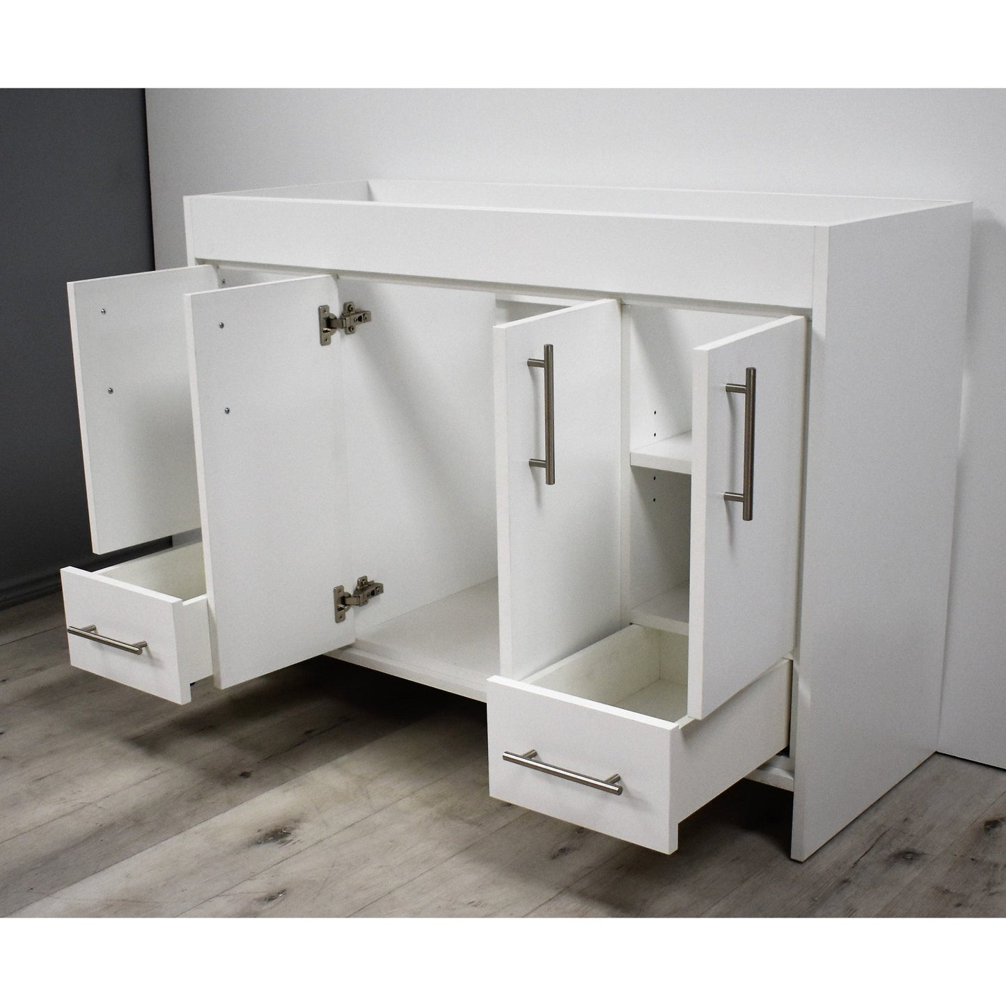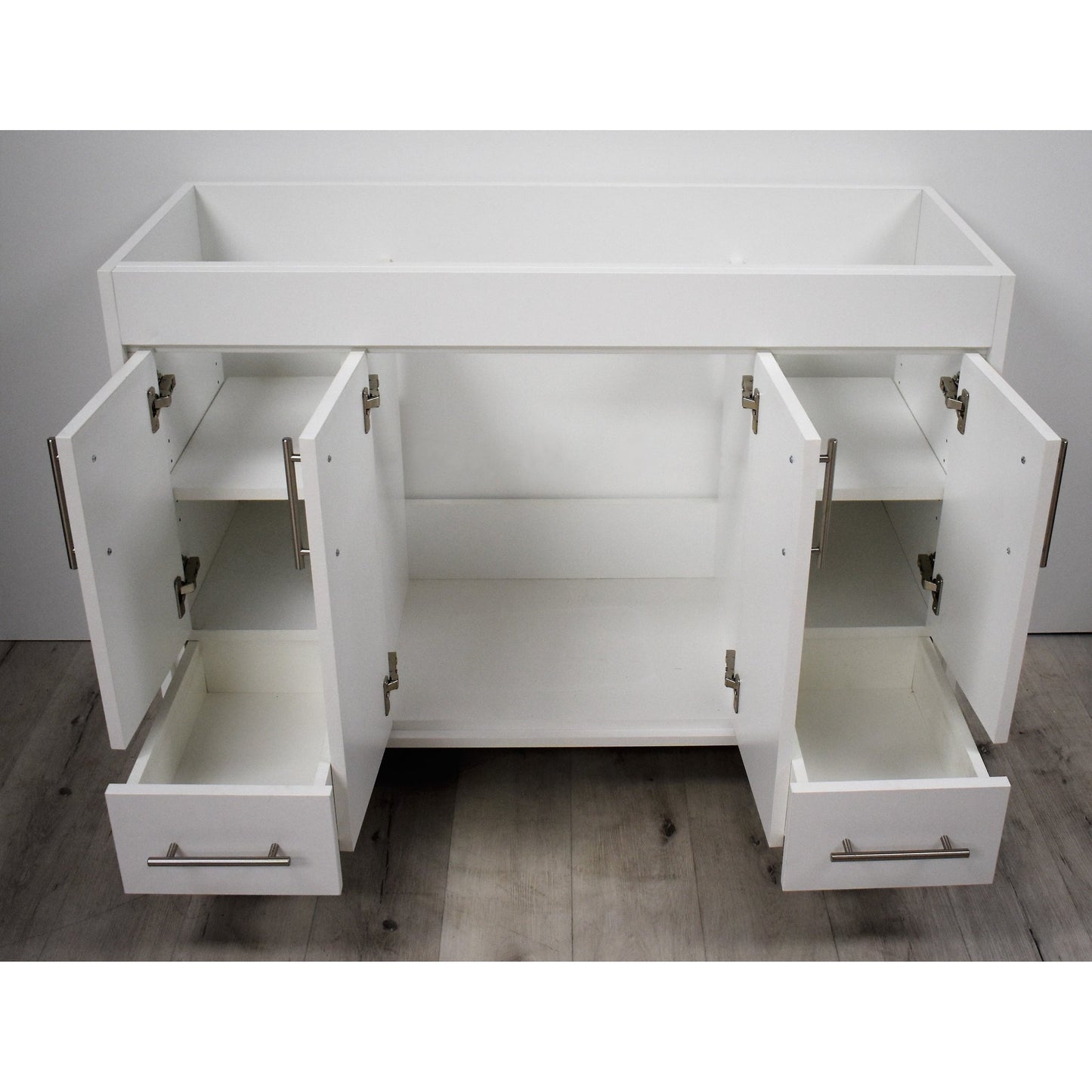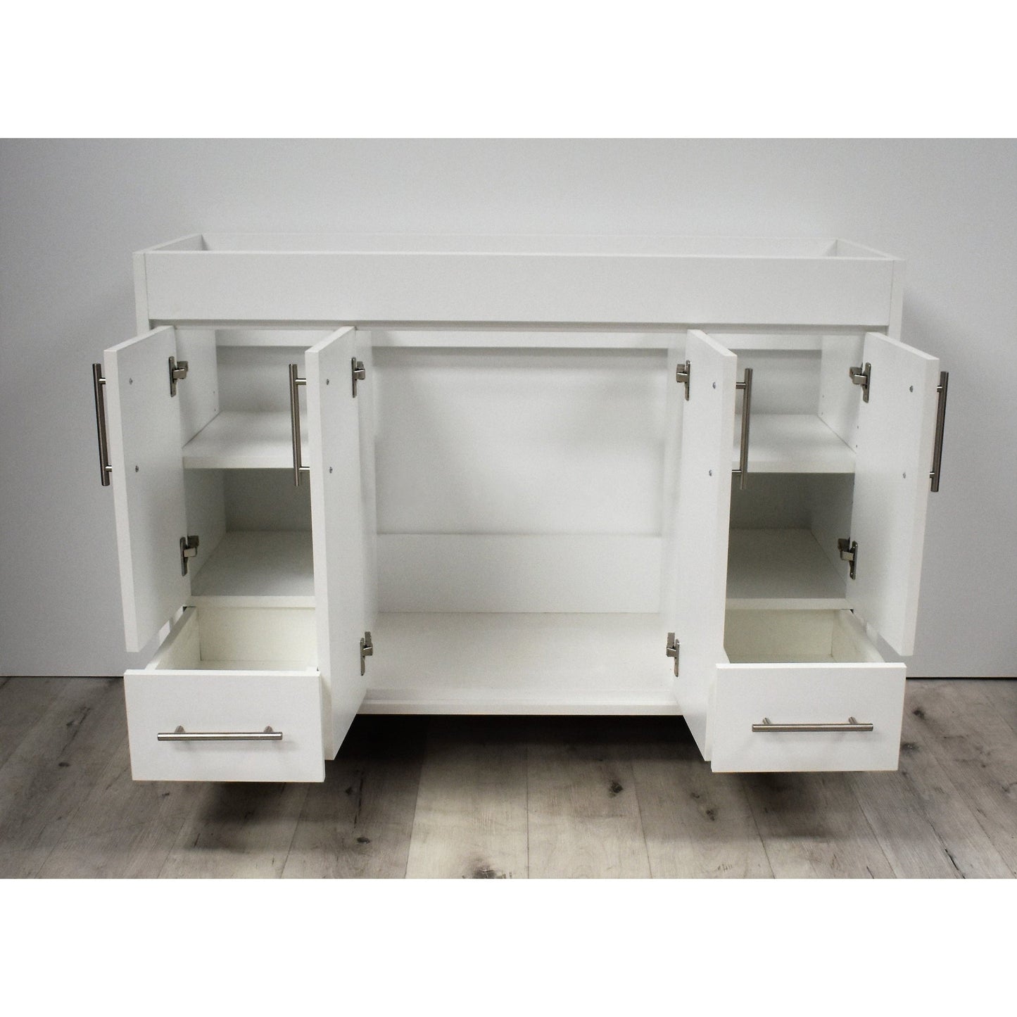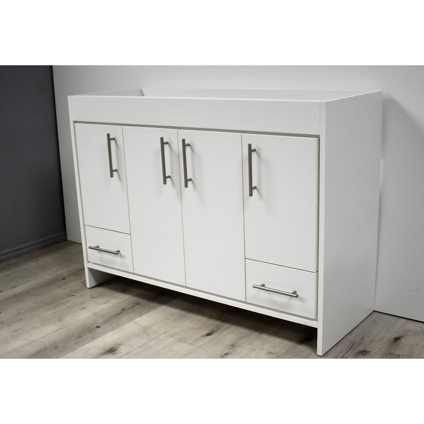 Volpa USA Pacific 48" White Freestanding Modern Bathroom Vanity With Brushed Nickel Round Handles Cabinet Only