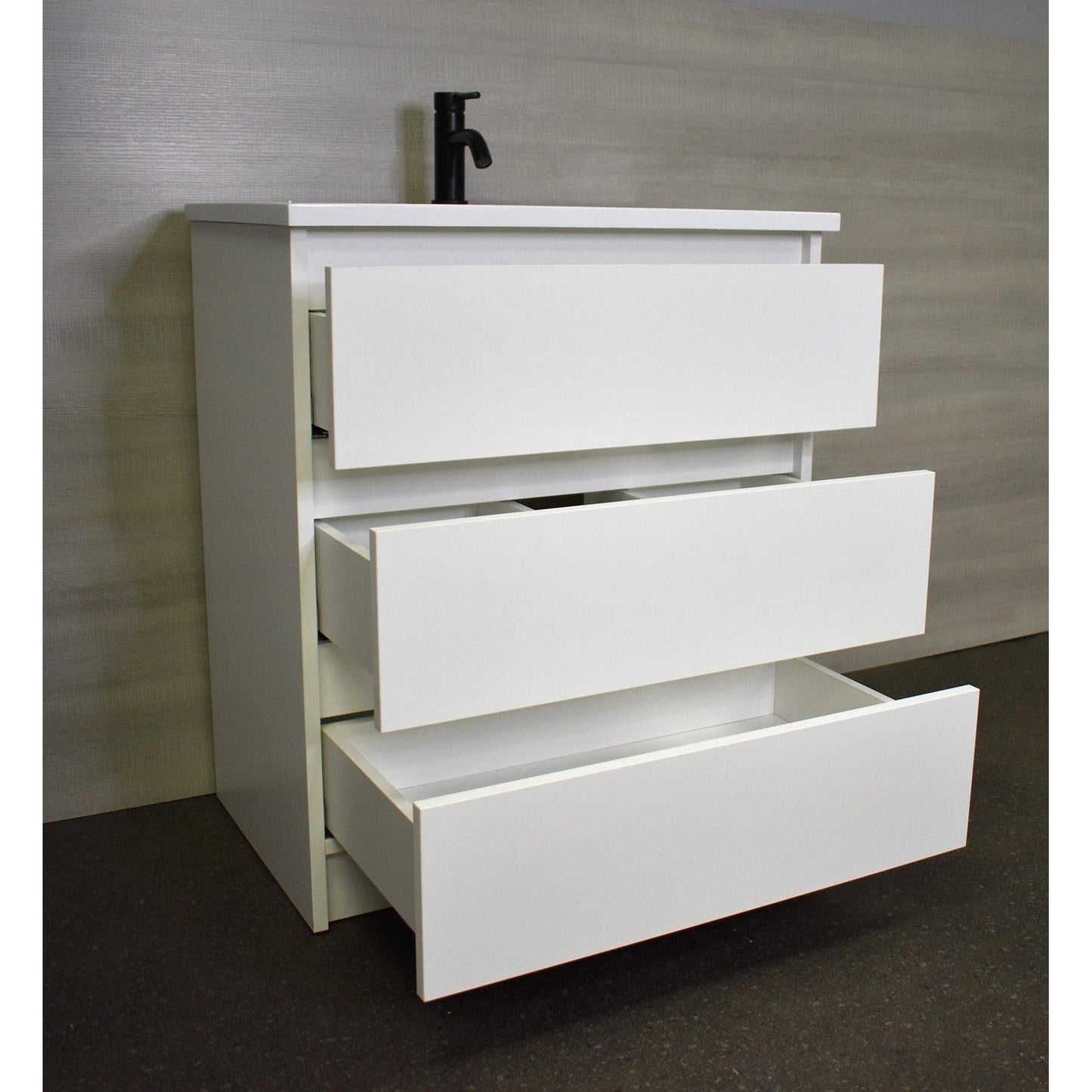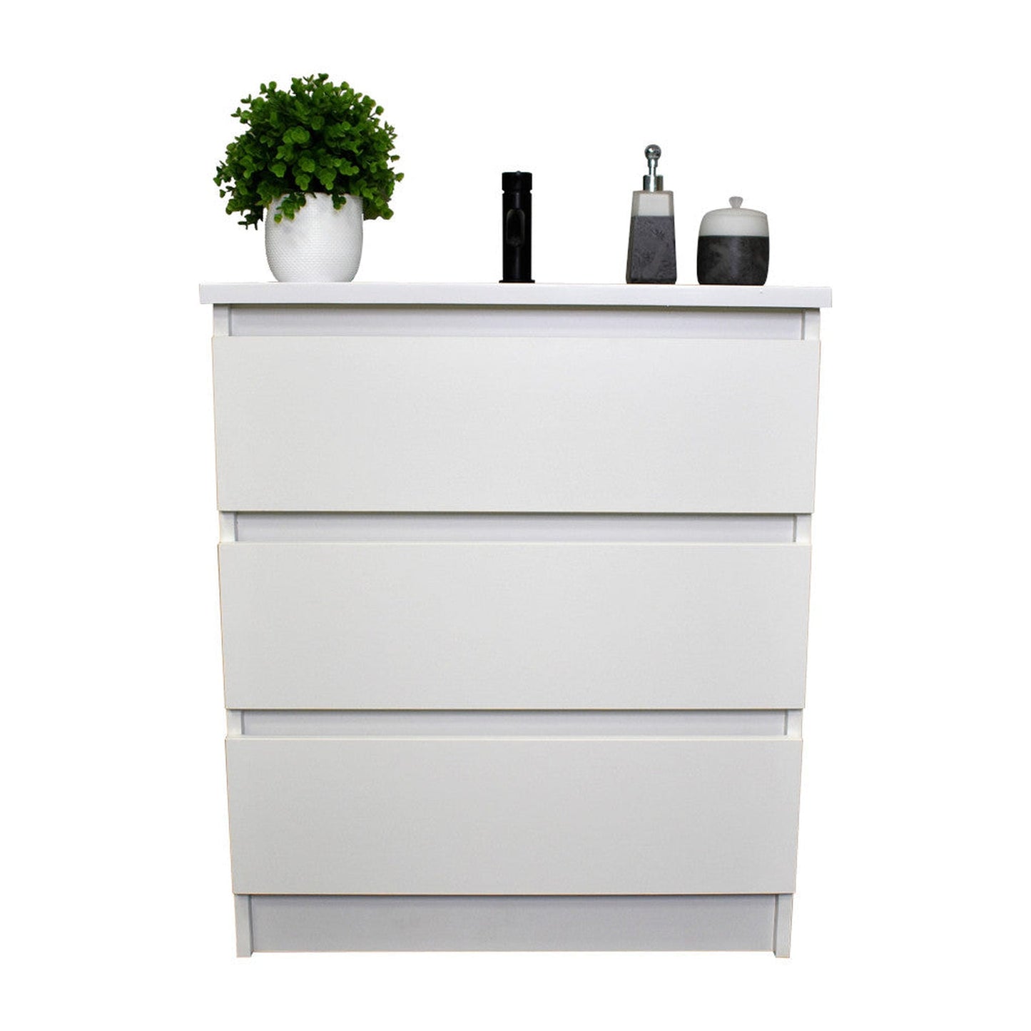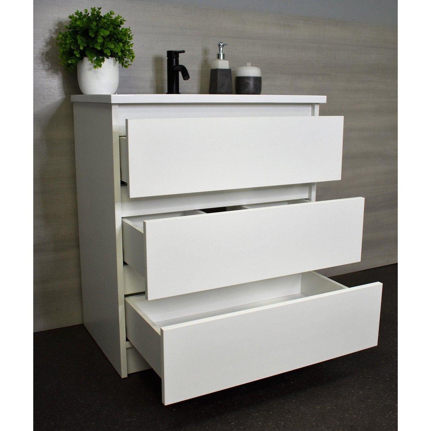 Volpa USA Pepper 30" x 20" Glossy White Modern Freestanding Bathroom Vanity With Acrylic Top, Integrated Acrylic Sink and drawers