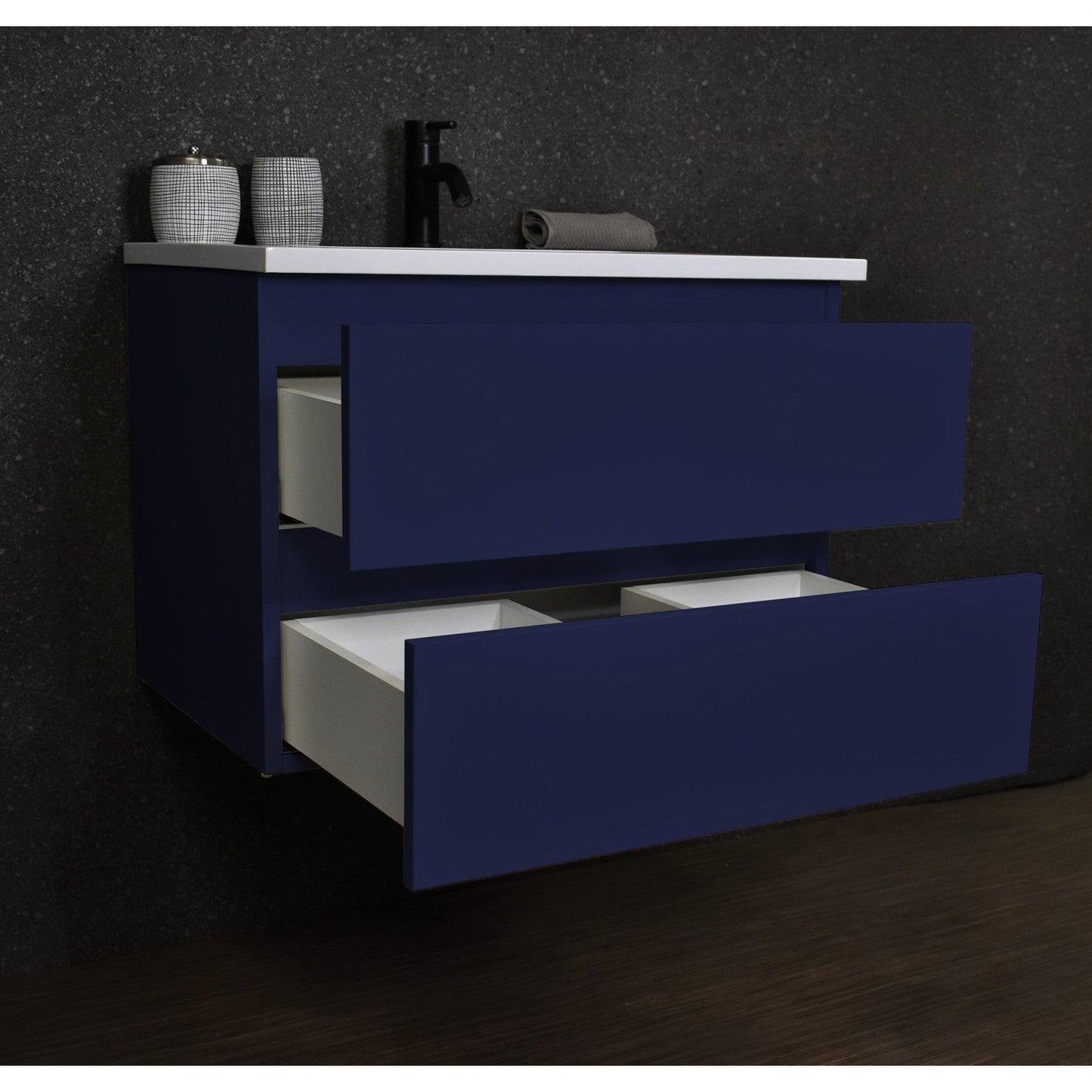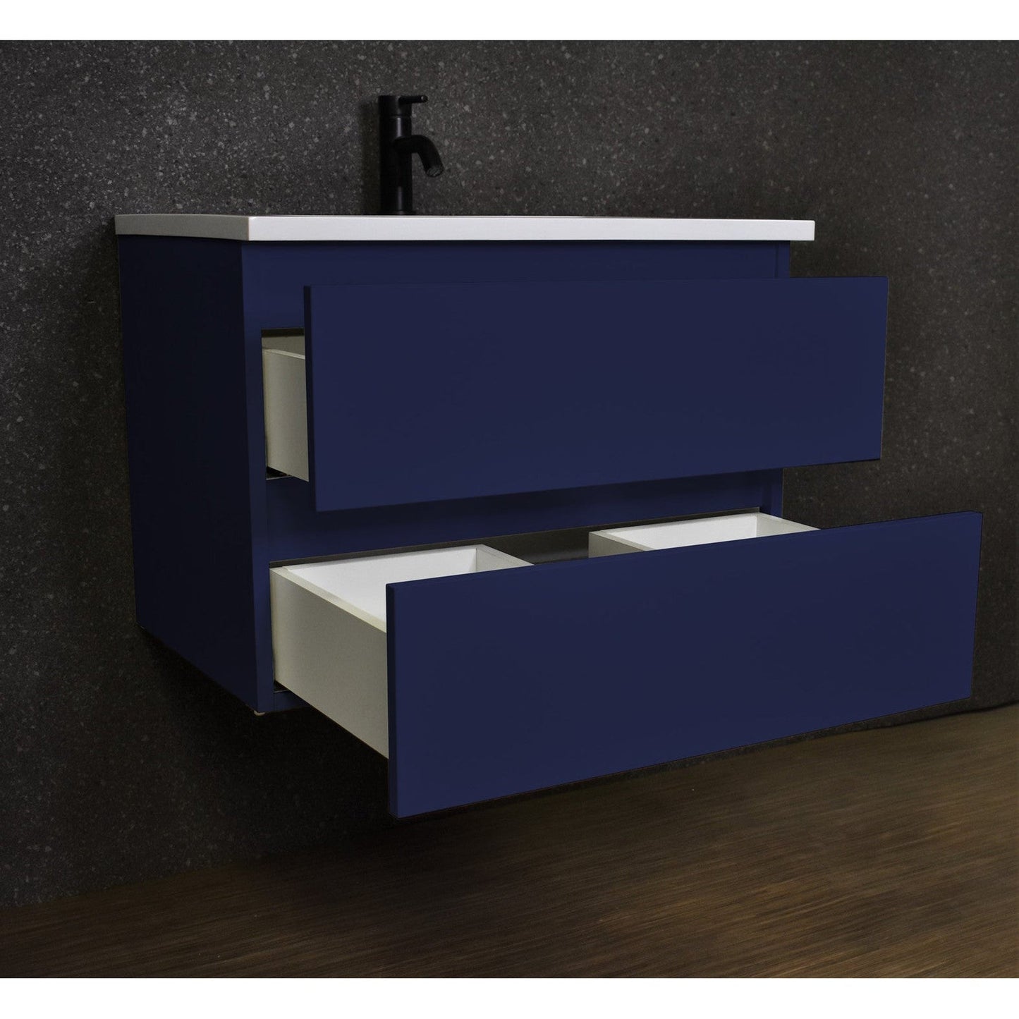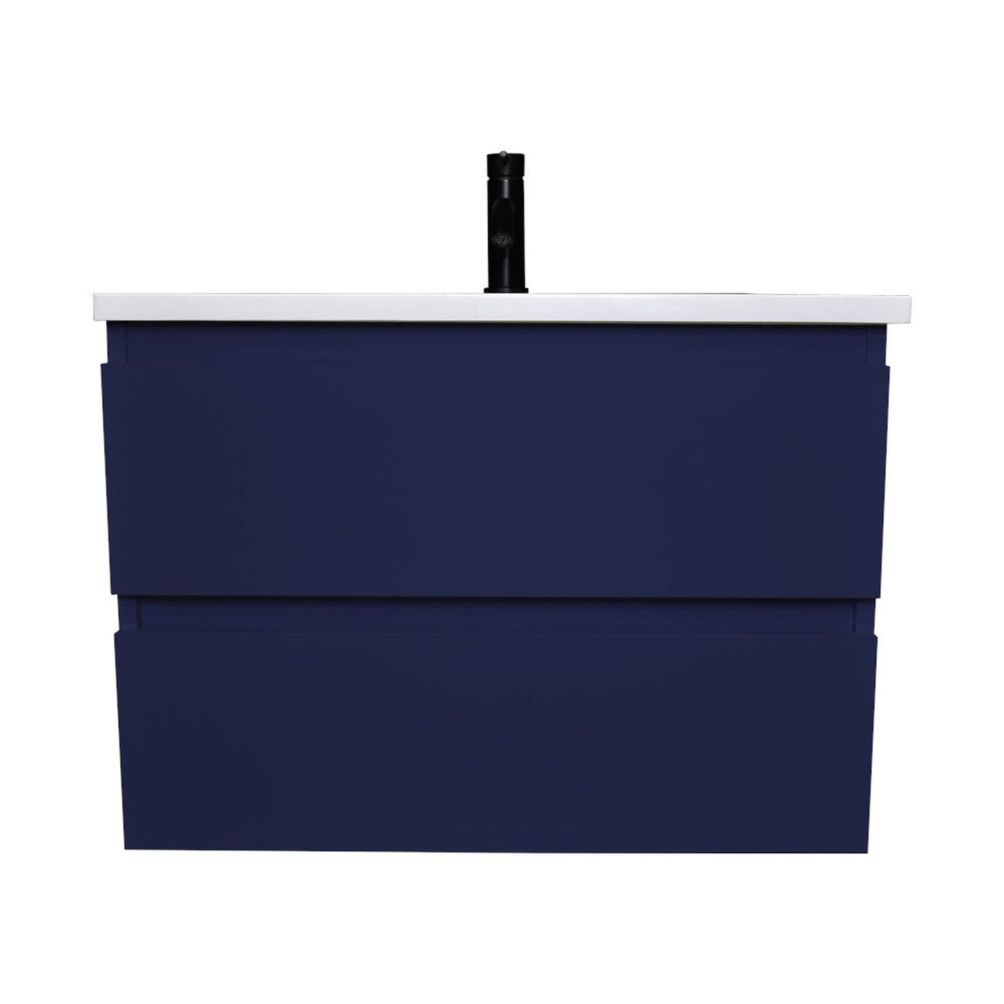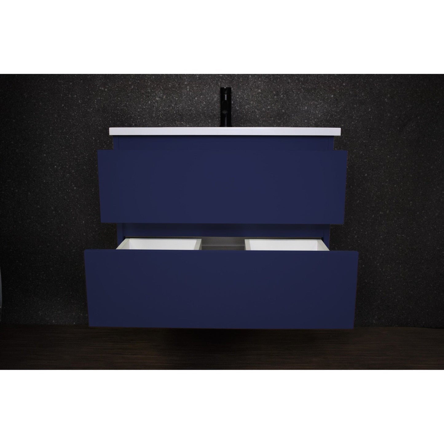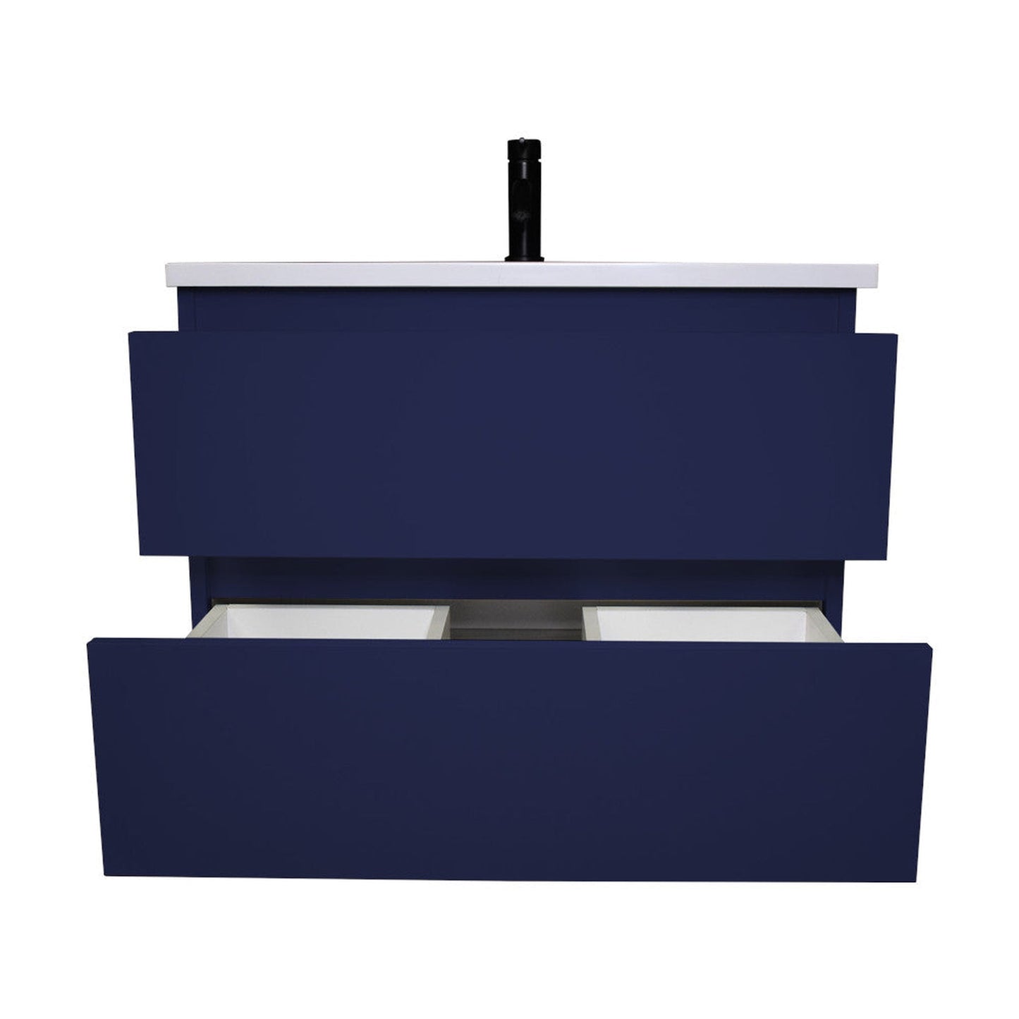Volpa USA Salt 24" x 20" Navy Wall-Mounted Floating Bathroom Vanity With Drawers, Acrylic Top and Integrated Acrylic Sink