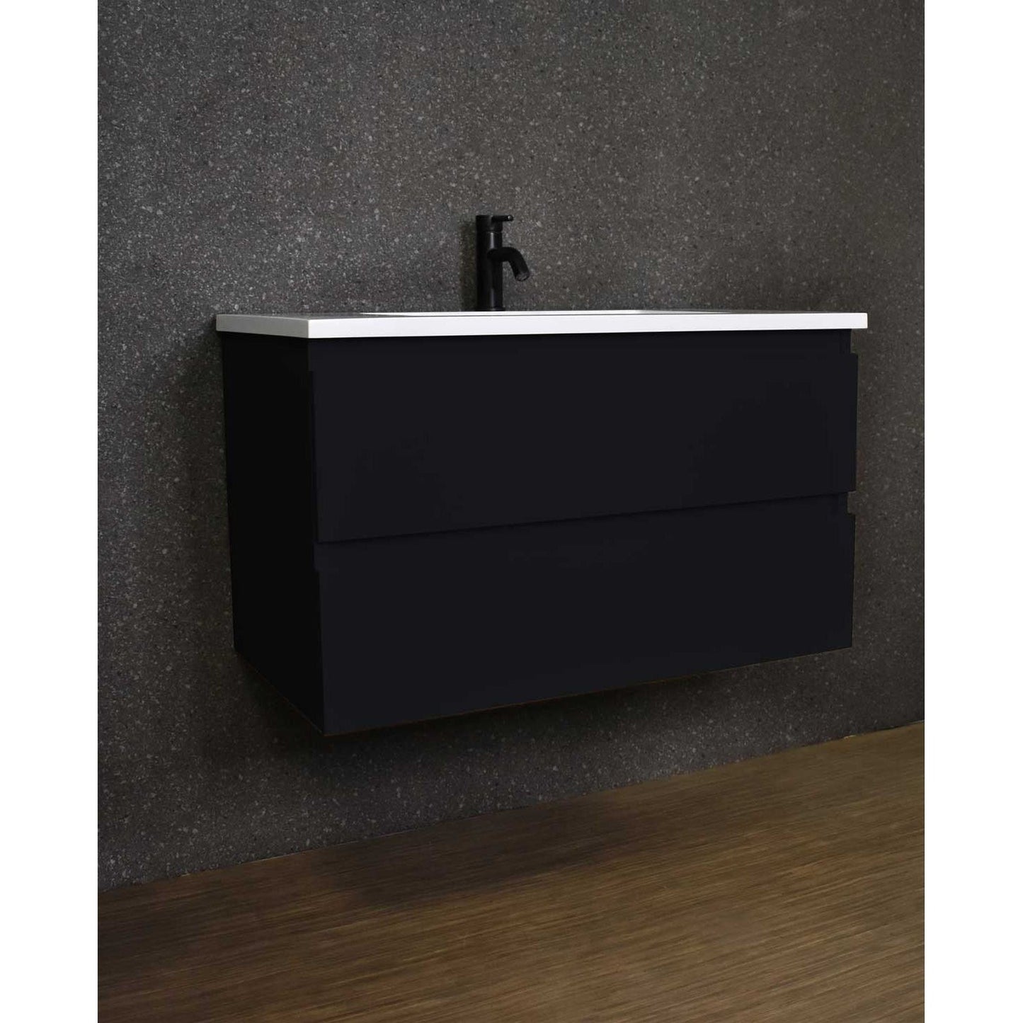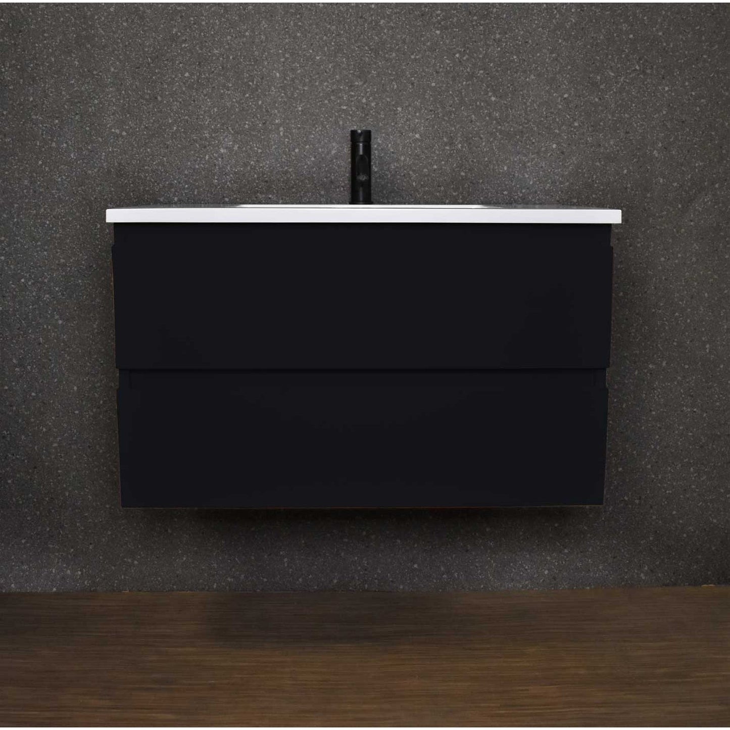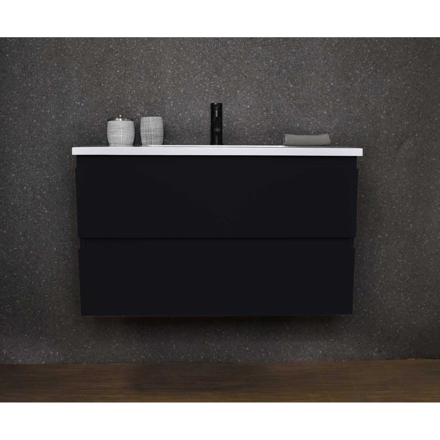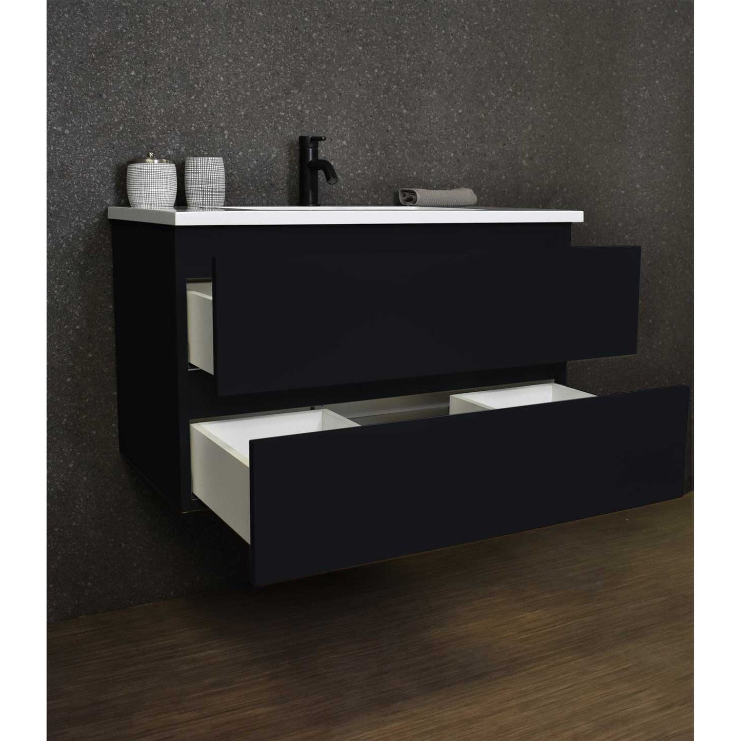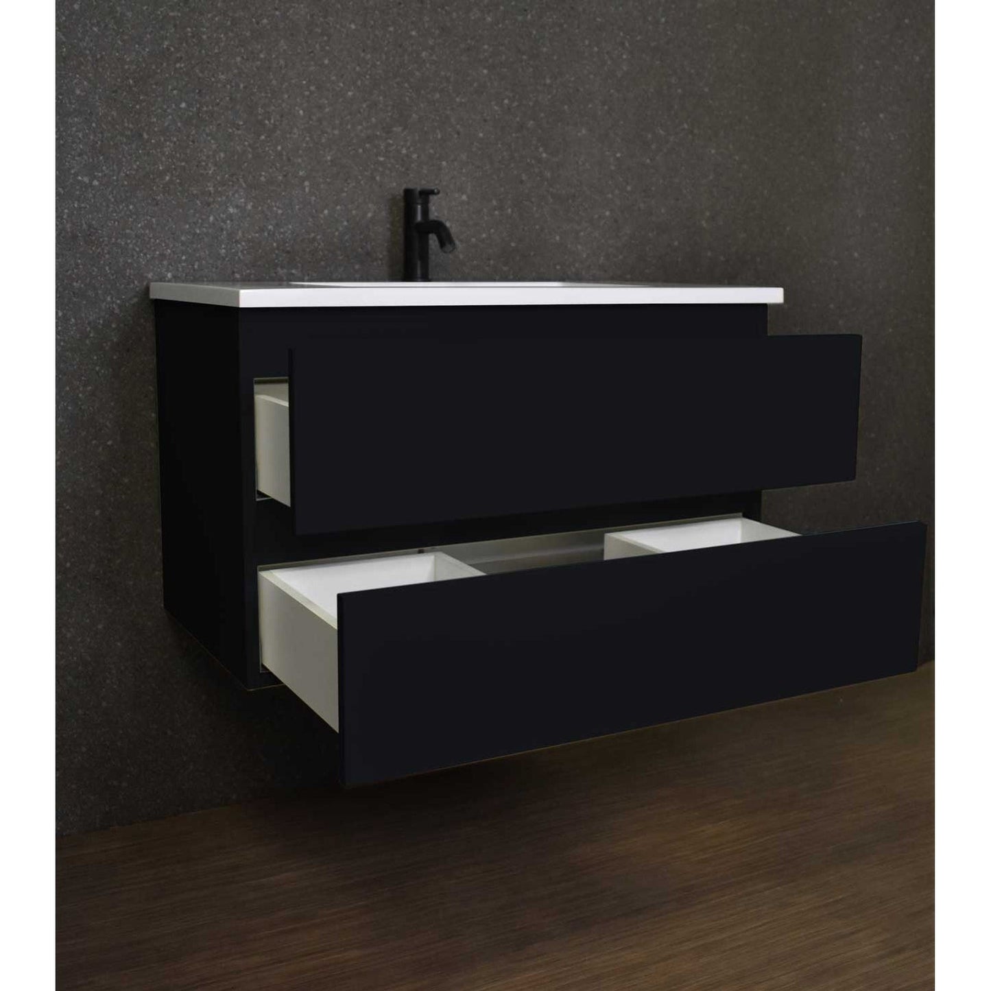 Volpa USA Salt 36" x 20" Black Wall-Mounted Floating Bathroom Vanity With Drawers, Acrylic Top and Integrated Acrylic Sink