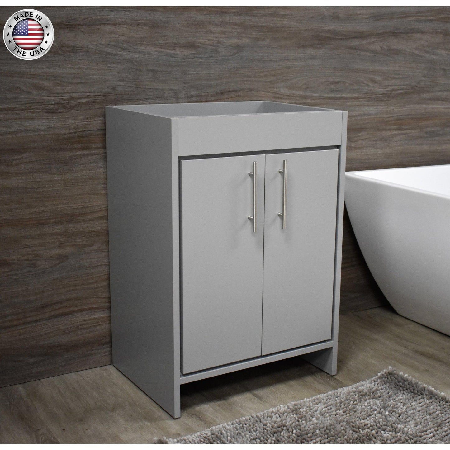 Volpa USA Villa 30" Gray Freestanding Modern Bathroom Vanity With Brushed Nickel Round Handles