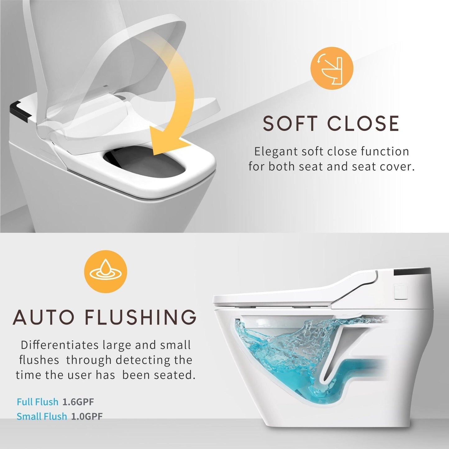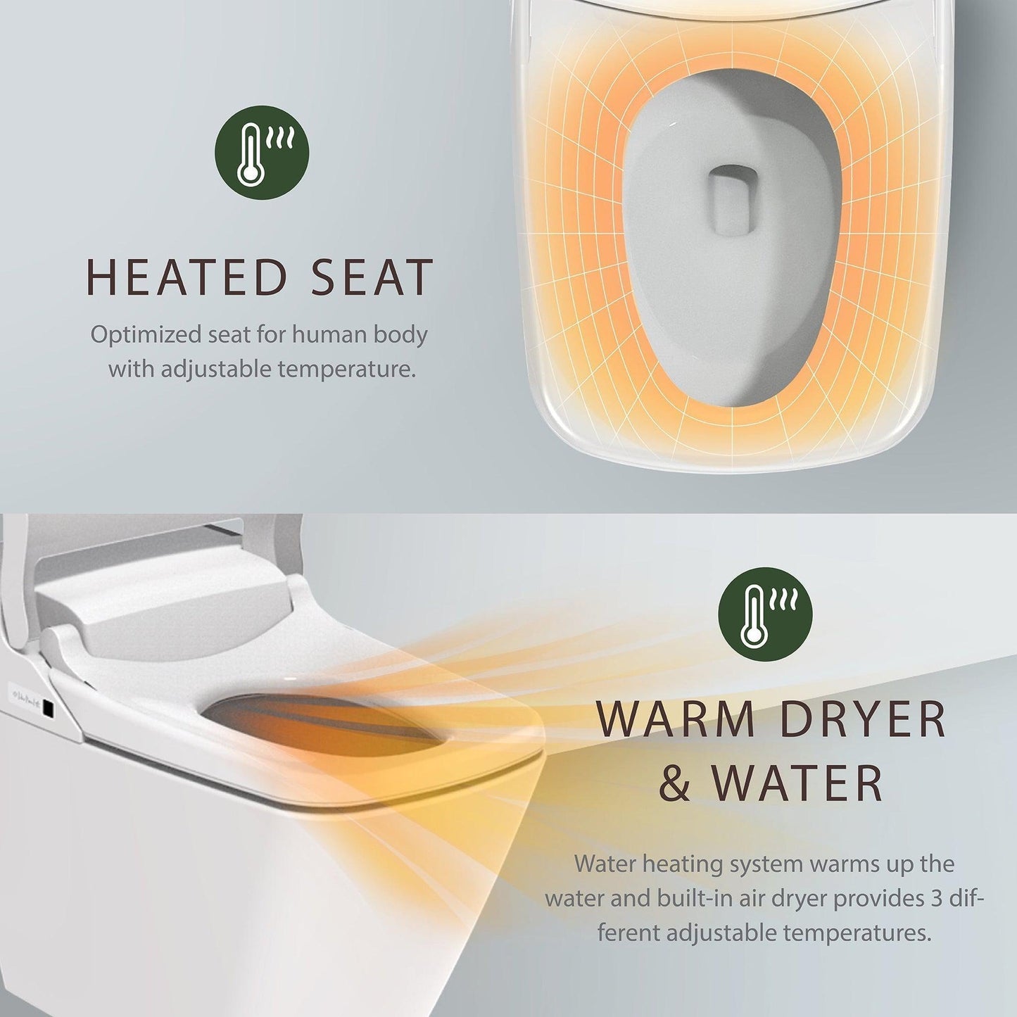 VOVO Stylement TCB-090S Electric Integrated Smart Bidet Toilet With Auto Flush, UV LED Sterilization, Smart Toilet Bidet, Heated Seat, Warm Dry and Water and Remote Control