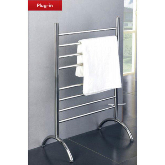 This freestanding towel warmer goes above and beyond the normal benefits of traditional wall-mounted models by also providing a huge degree of flexibility. Because the Barcelona is freestanding, it can be easily moved to any room in your home that has a 120 VAC outlet. Additionally, with the Barcelona’s arched legs, 8 round bars, and brushed stainless steel finish, this towel warmer is also an attractive design element in any room. The sleek Barcelona takes up very little floor space while still being able to accommodate two bath towels or a bathrobe to help keep them warm or dry between uses.