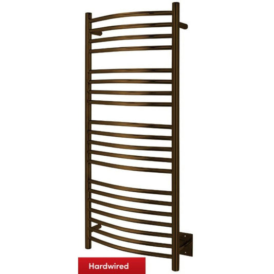 The Bellagio towel warmer from WarmlyYours is an impressive combination of functional design and timeless elegance. The 20 curved, heated bars of this model help it deliver a heat output of 648 BTUs per hour. The unique spacing and number of bars of the Bellagio ensure that this model will be able to warm and dry a wide variety of towel shapes and sizes. The hardwired connection (120 VAC) of this model provides a streamlined appearance without visible wires or cords. This version of the Bellagio comes with a gorgeous oil-rubbed bronze finish and durable stainless steel construction. This model also comes with built-in TempSmart™ protection to prevent the unit from overheating.