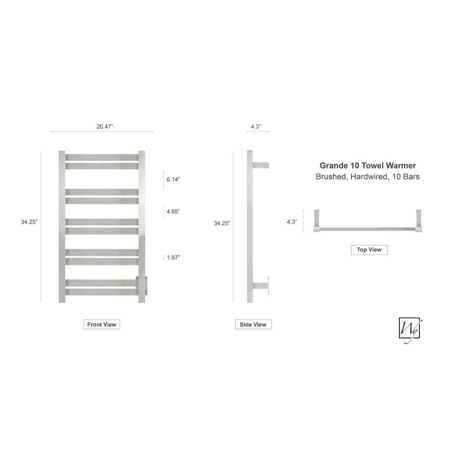 - Generous 10-Bar Design: The Grande 10 towel warmer uses 10 brushed stainless steel bars to evenly distribute heat, warming up to 2 large towels or bathrobes