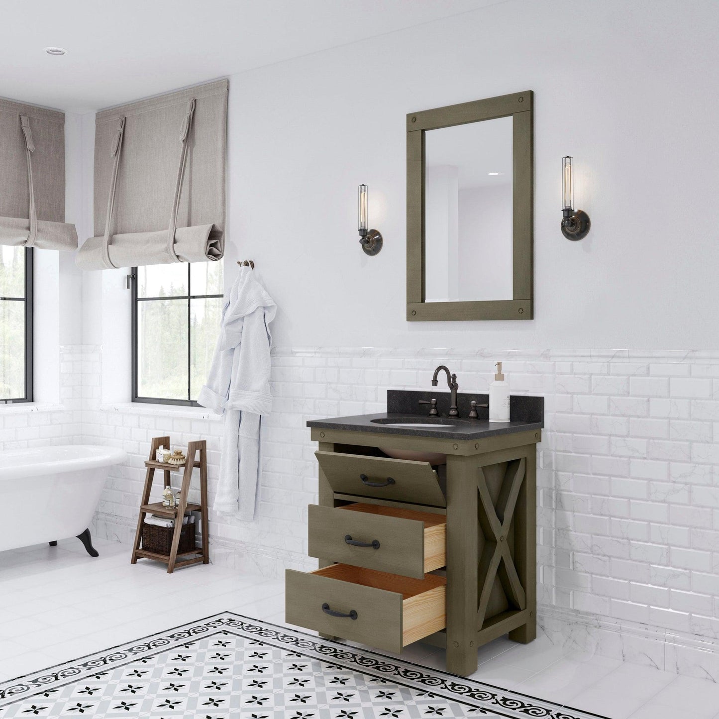 Water Creation Aberdeen 30" Grizzle Grey Single Sink Bathroom Vanity With Mirror With Blue Limestone Counter Top