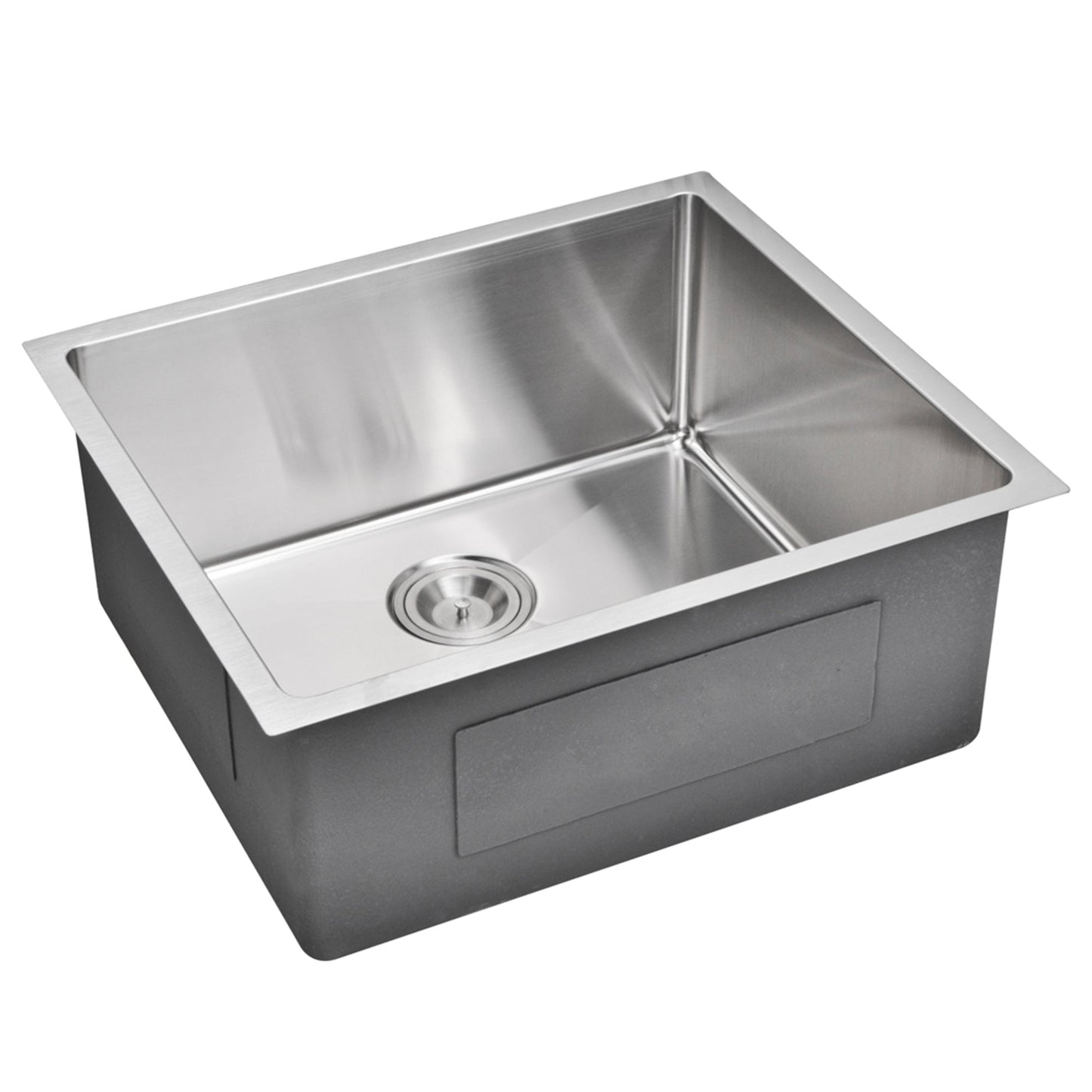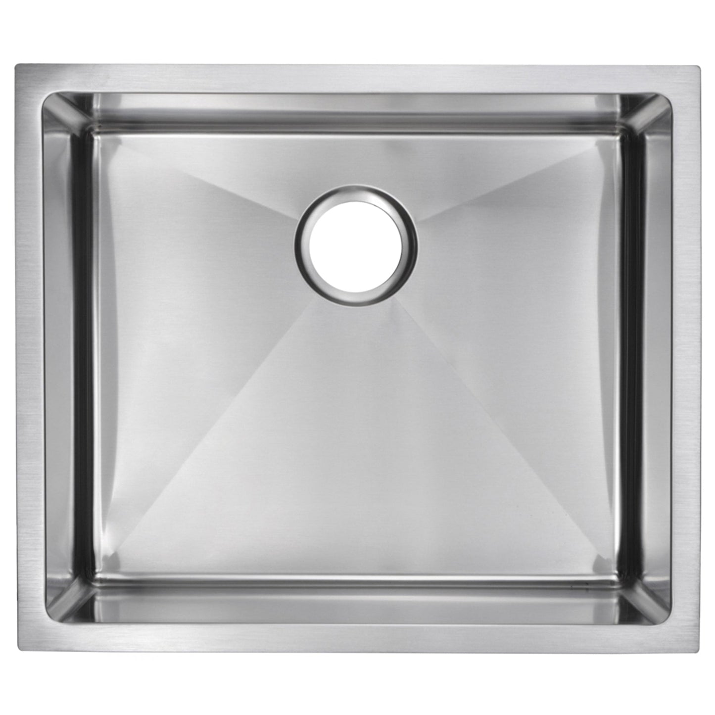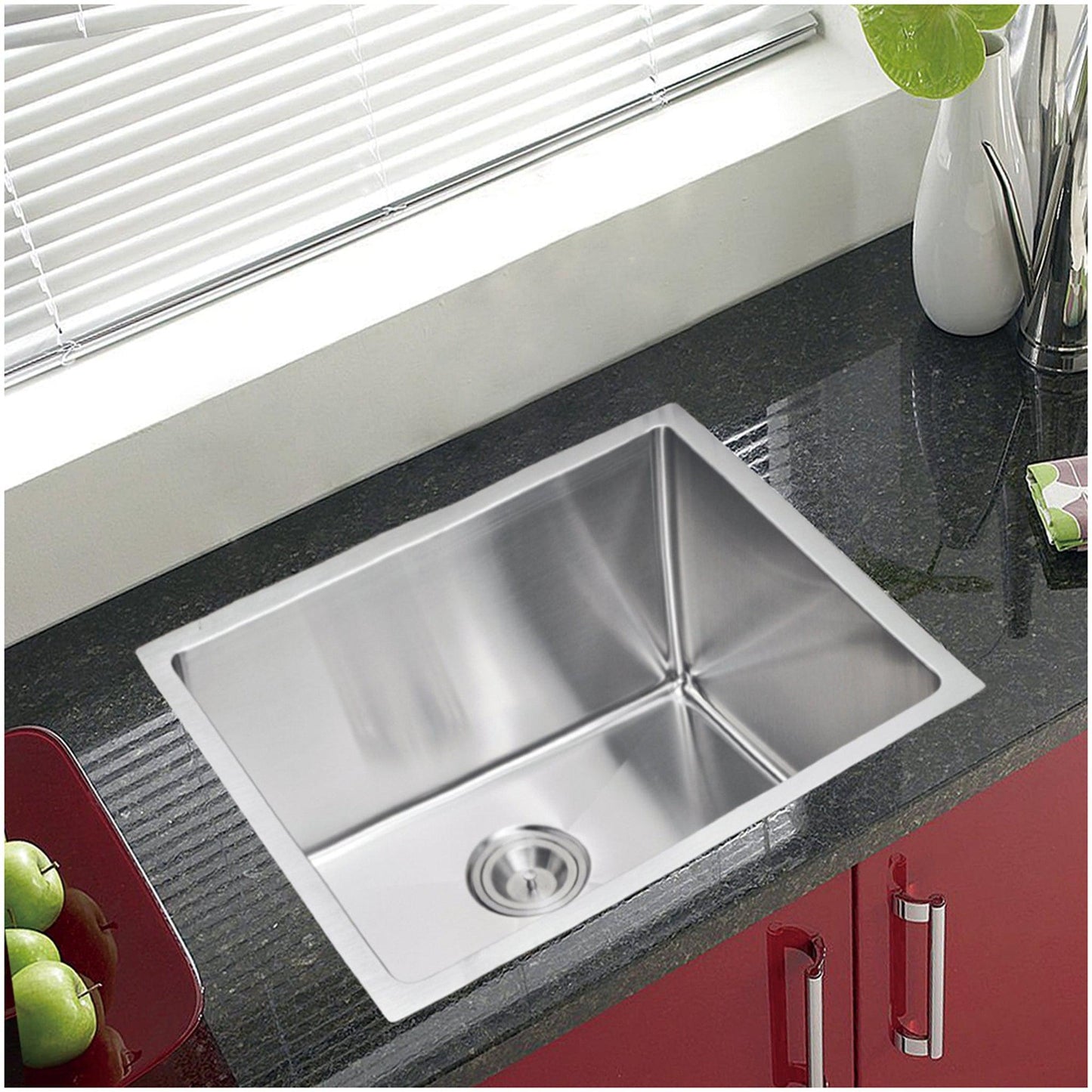 Water Creation Corner Radius Single Bowl Stainless Steel Hand Made Undermount 23 Inch X 20 Inch Sink With Drain And Strainer