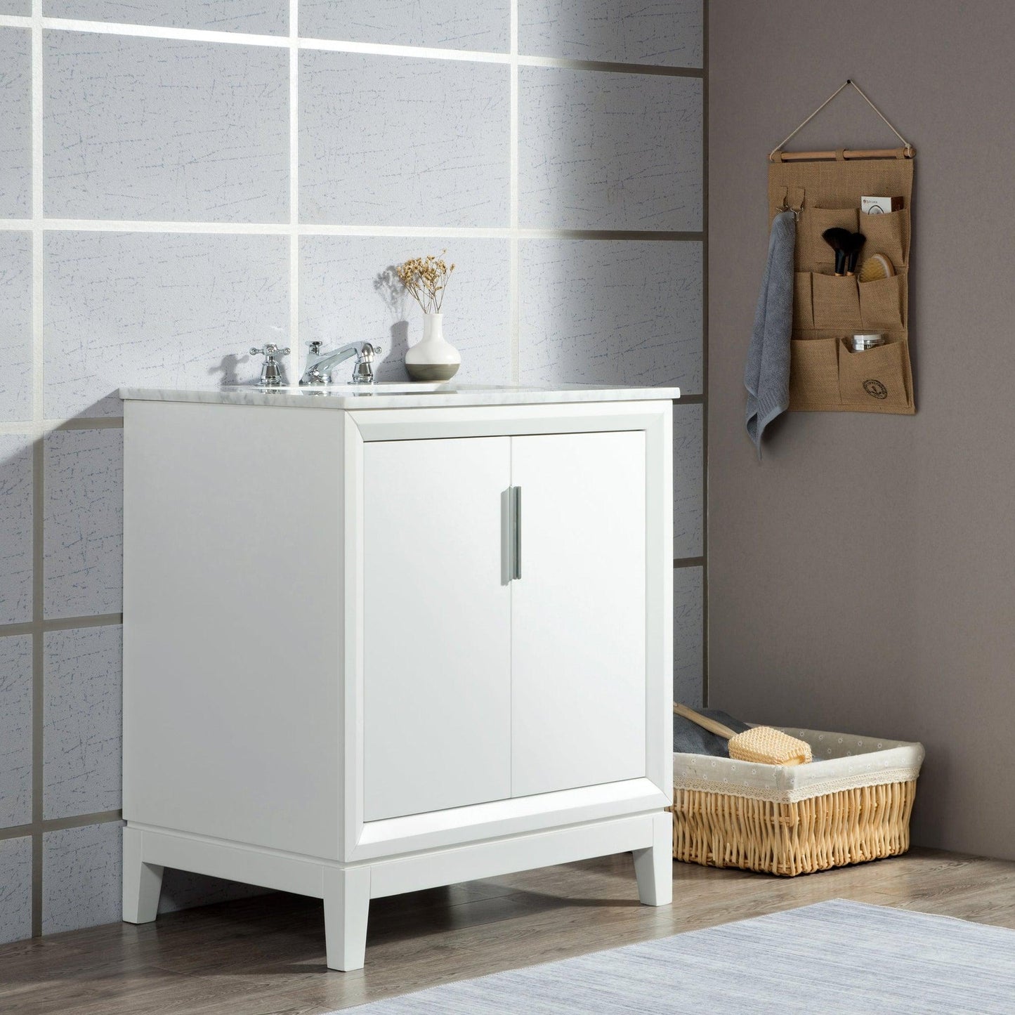 Water Creation Elizabeth 30" Single Sink Carrara White Marble Vanity In Pure White