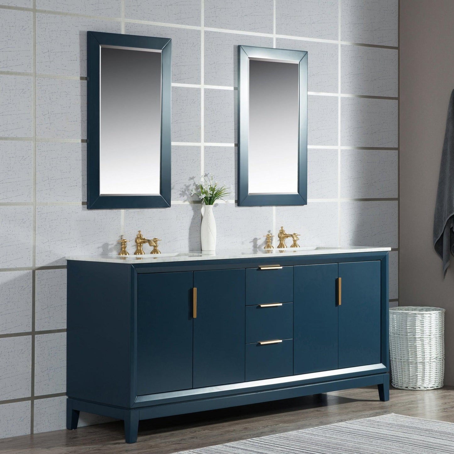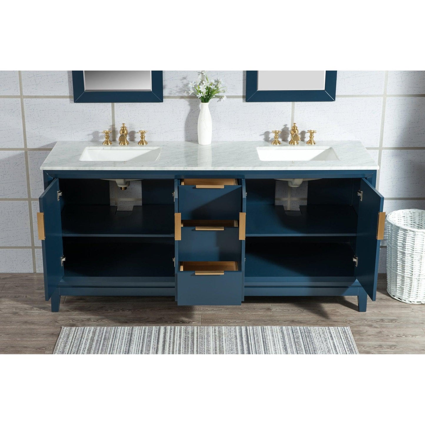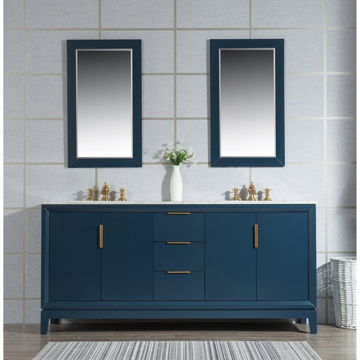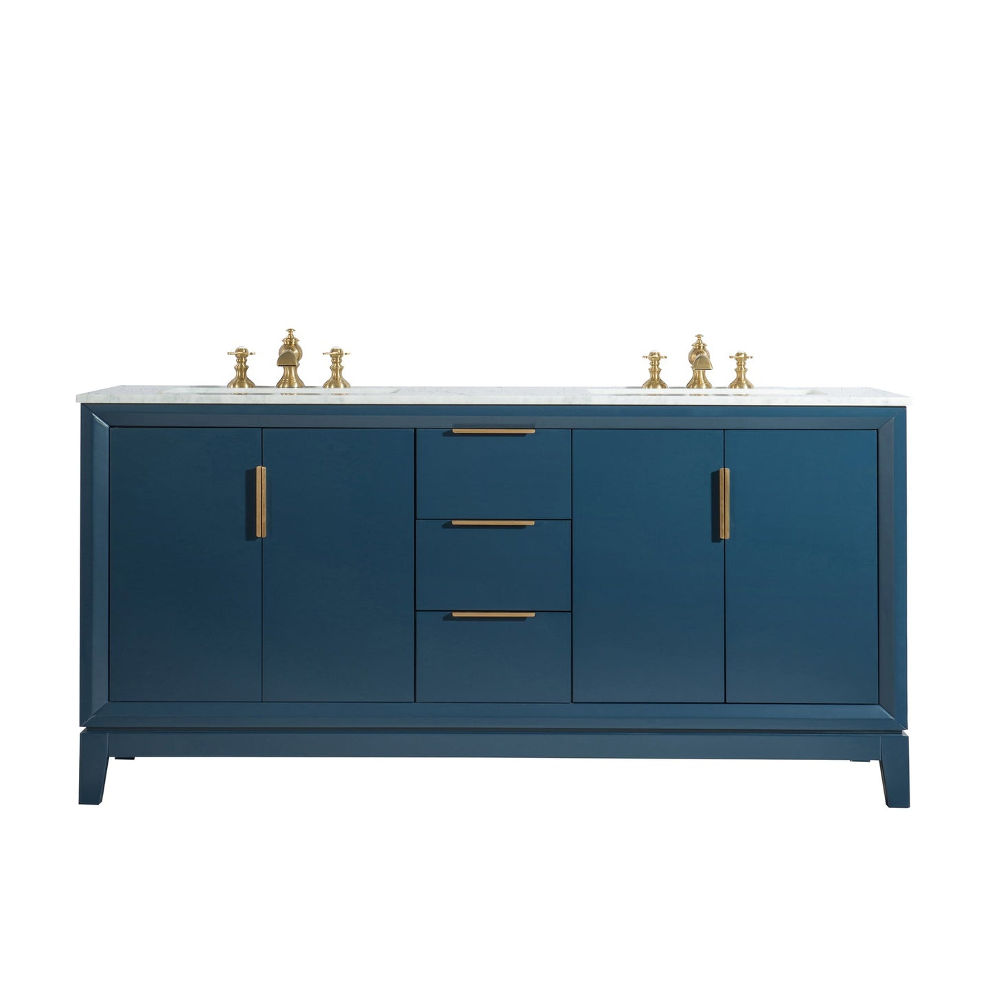 Water Creation Elizabeth 72" Double Sink Carrara White Marble Vanity In Monarch Blue