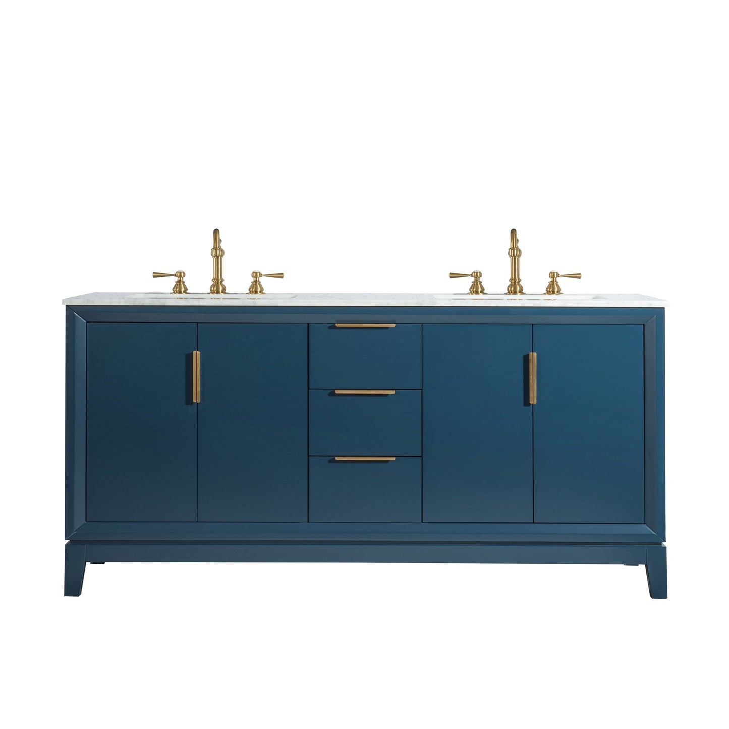 Water Creation Elizabeth 72" Double Sink Carrara White Marble Vanity In Monarch Blue With F2-0012-06-TL Lavatory Faucet