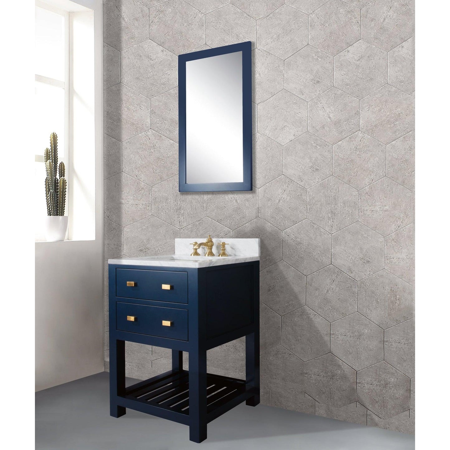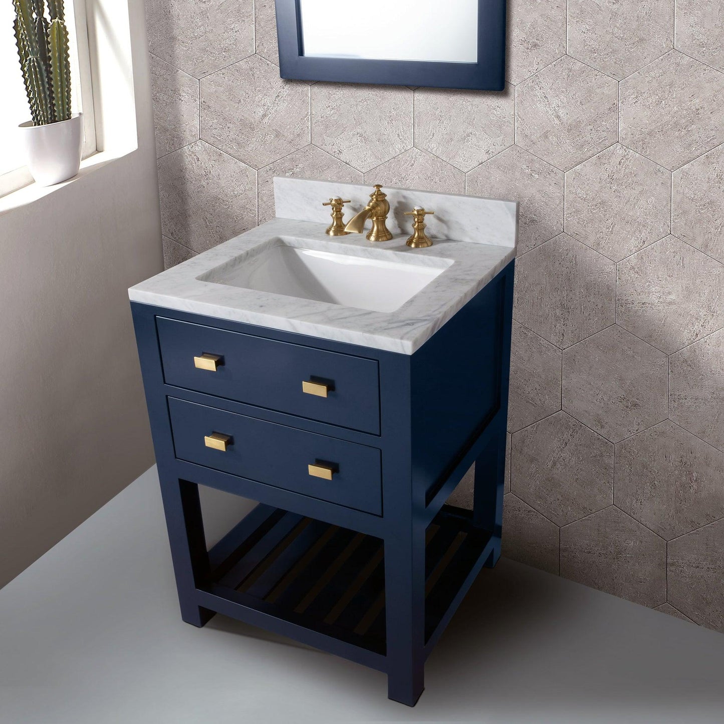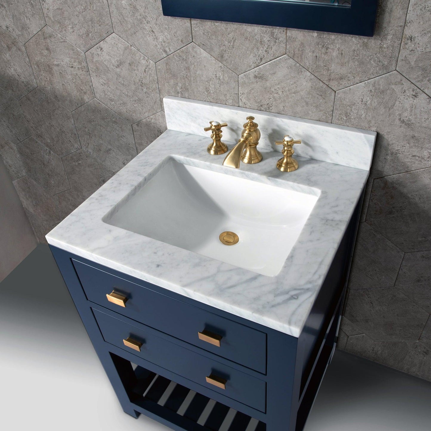 Water Creation Madalyn 24" Monarch Blue Single Sink Bathroom Vanity With F2-0013 Satin Gold Faucet And Mirror