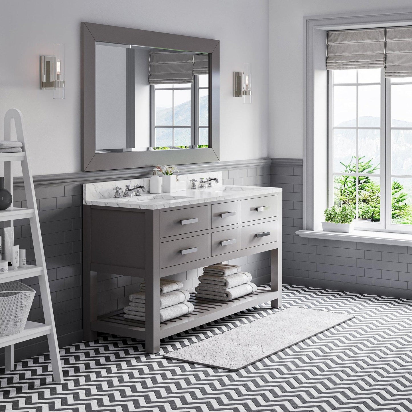Water Creation Madalyn 60" Cashmere Grey Double Sink Bathroom Vanity With Matching Framed Mirror And Faucet