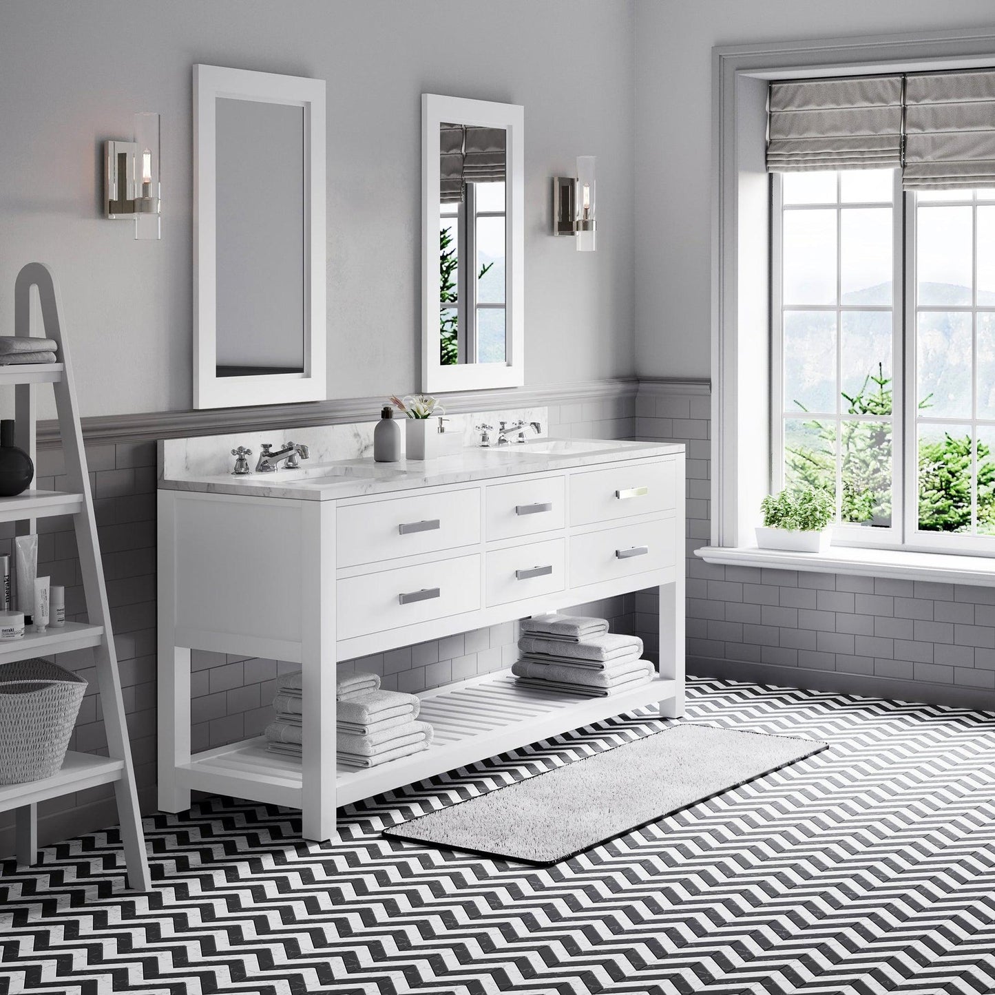 Water Creation Madalyn 72" Pure White Double Sink Bathroom Vanity With 2 Matching Framed Mirrors