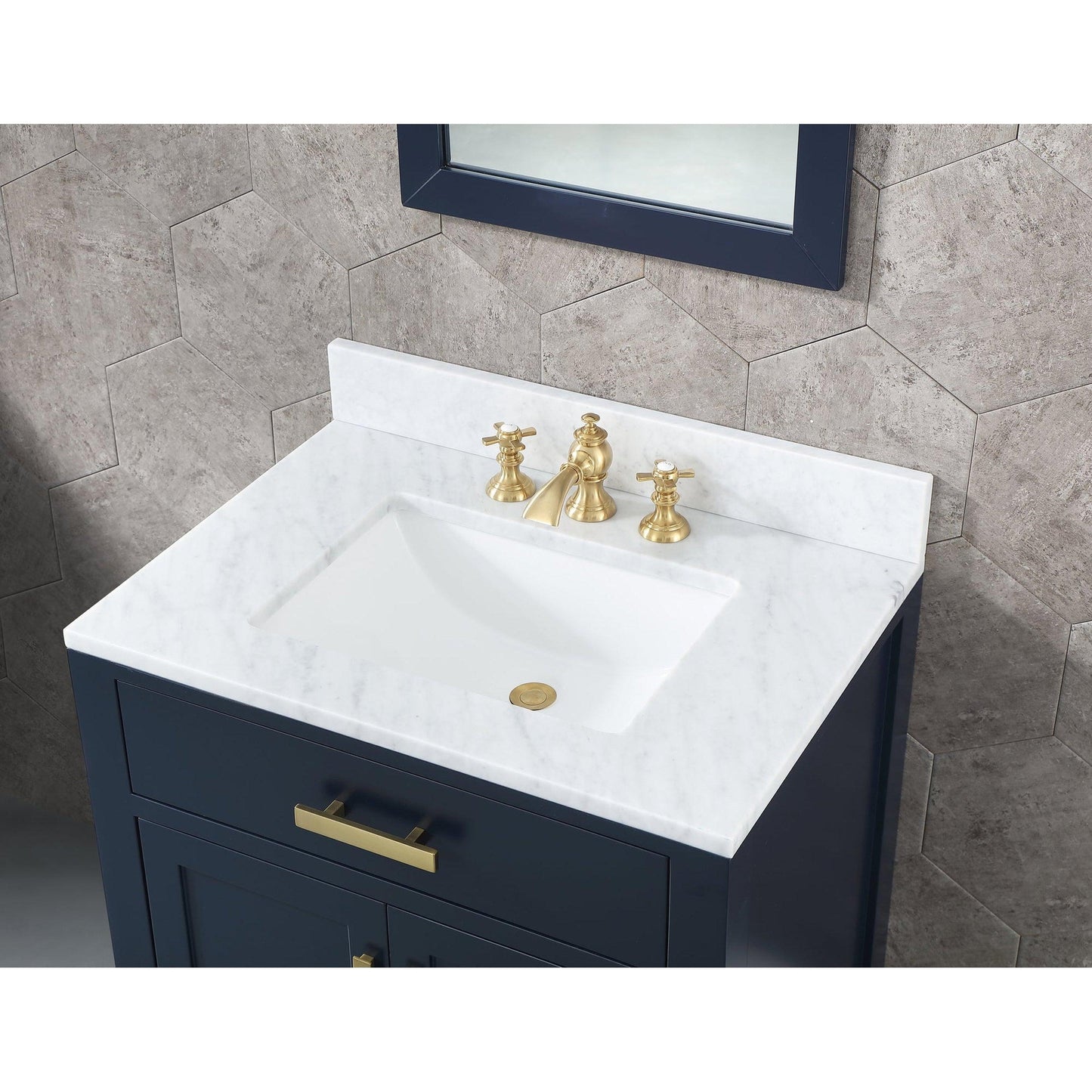 Water Creation Madison 30" Single Sink Carrara White Marble Vanity In Monarch Blue With F2-0013-06-FX Lavatory Faucet