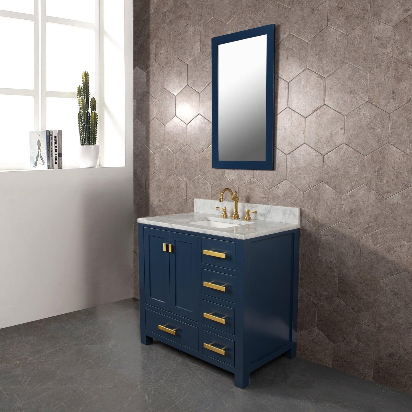 Water Creation Madison 36" Single Sink Carrara White Marble Vanity In Monarch Blue