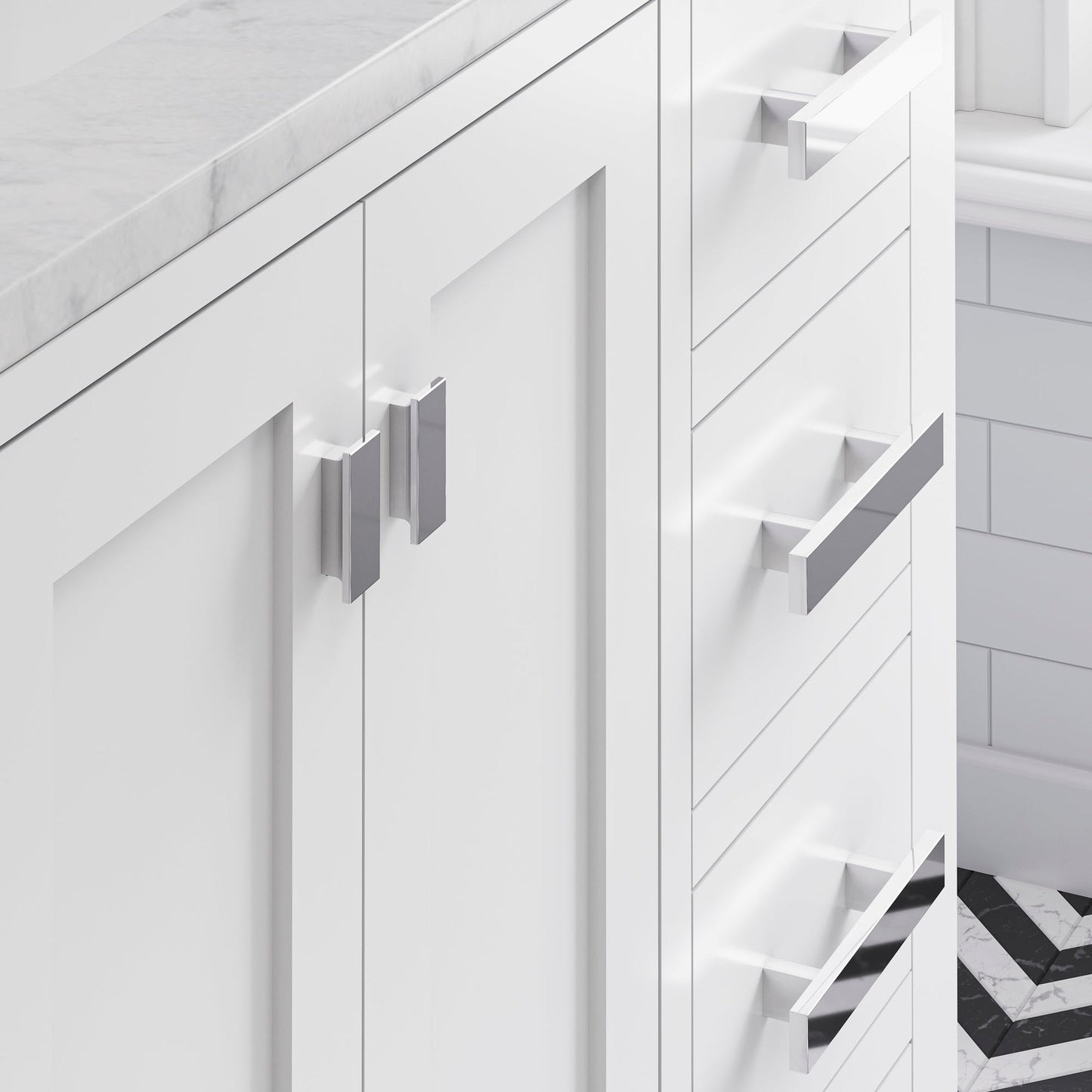 Water Creation's collection of premier single sink bathroom Vanity will add a level of sophistication and class to any bathroom's decor The crossroads of timeless design and innovative modern manufacturing processes merge harmoniously to ensure each vanity's finishes and function are as reliable as their unmistakable beauty. Constructed of 100% hardwood and not particle board, Water Creation prides itself on creating high-class Vanity that are designed to last a lifetime. The marble countertop, ceramic sink, and elegantly crafted doors all lend credence to the durability and superior craftsmanship that Water Creation is known for. With the understanding that no one space is alike, all of Water Creation's vanity designs come in multiple lengths to accommodate any room size.