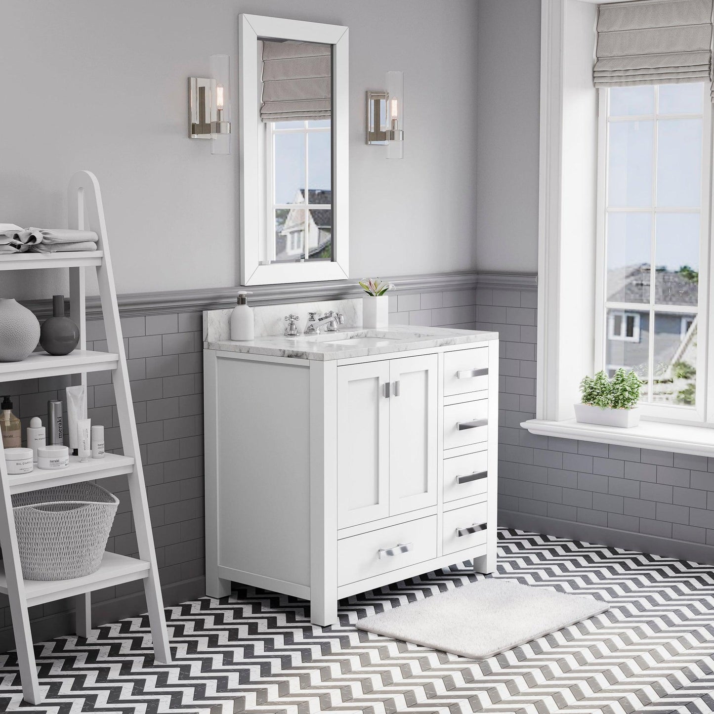 Water Creation Madison 36" Wide Pure White Single Sink Bathroom Vanity With Matching Mirror