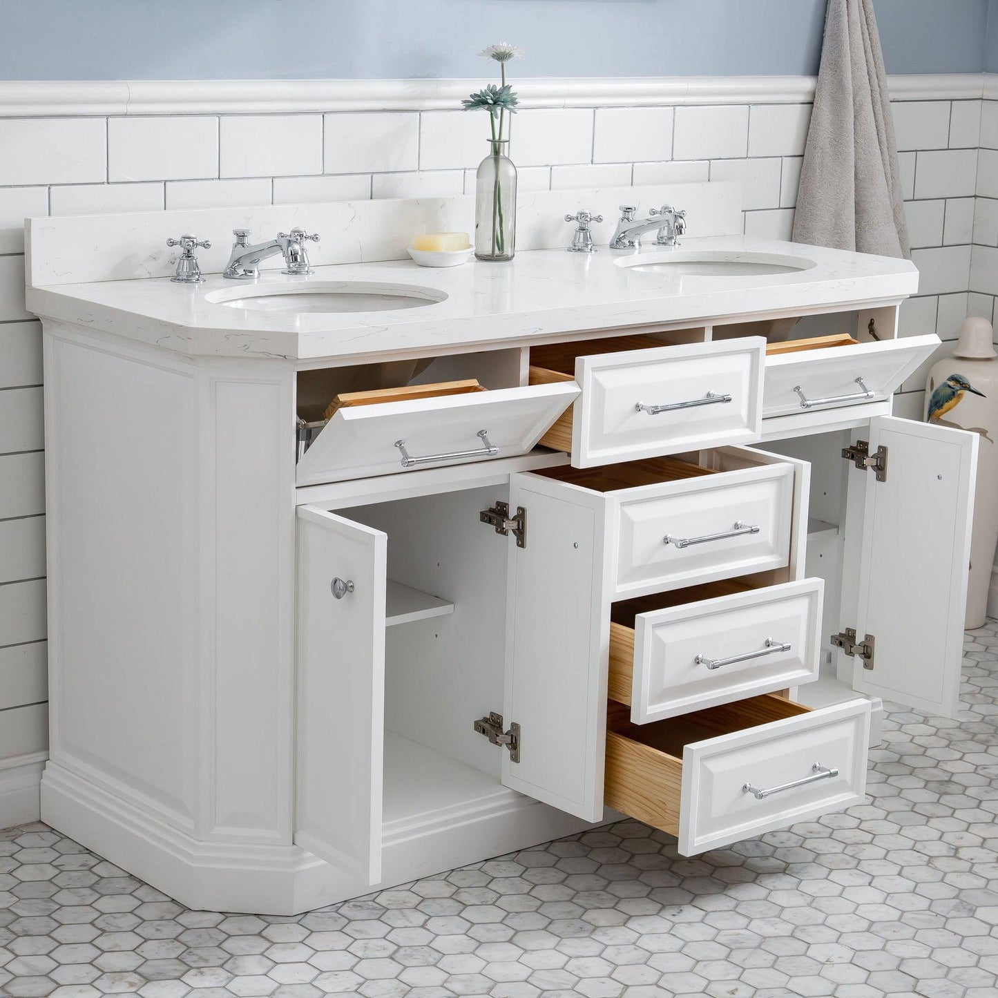 Water Creation Palace 60" Quartz Carrara Pure White Bathroom Vanity Set With Hardware in Chrome Finish