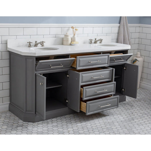 Water Creation Palace 72" Quartz Carrara Cashmere Grey Bathroom Vanity Set With Hardware in Polished Nickel (PVD) Finish