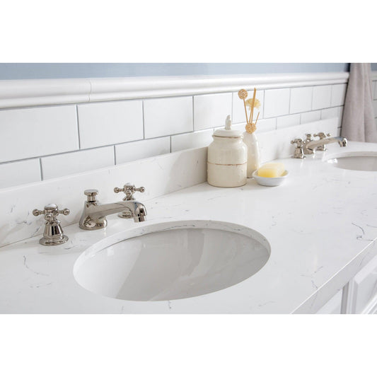 Water Creation Palace 72" Quartz Carrara Pure White Bathroom Vanity Set With Hardware And F2-0009 Faucets in Polished Nickel (PVD) Finish