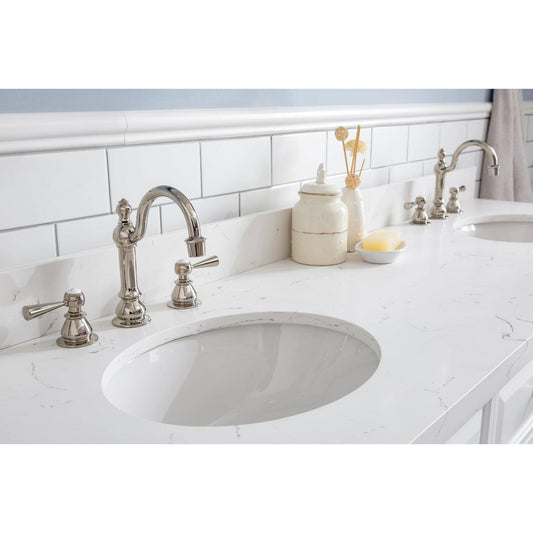 Water Creation Palace 72" Quartz Carrara Pure White Bathroom Vanity Set With Hardware And F2-0012 Faucets in Polished Nickel (PVD) Finish