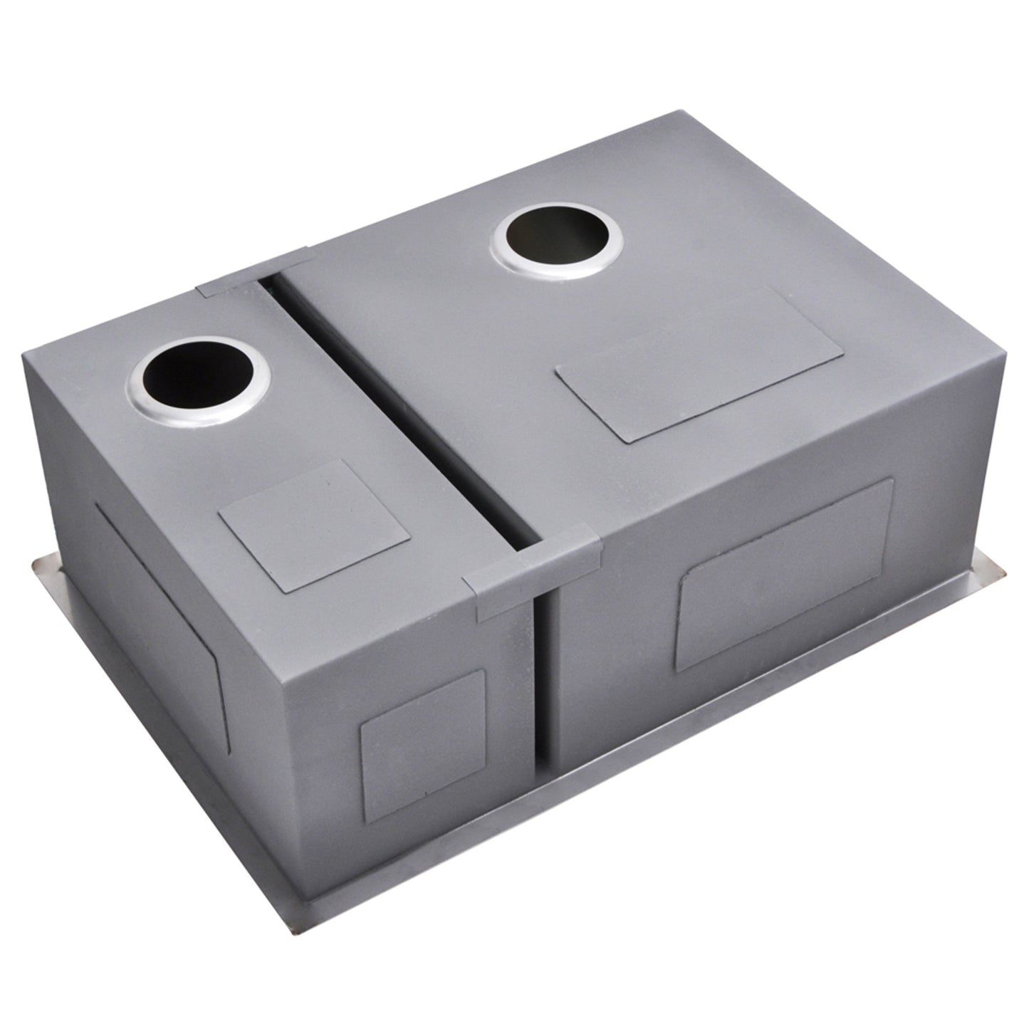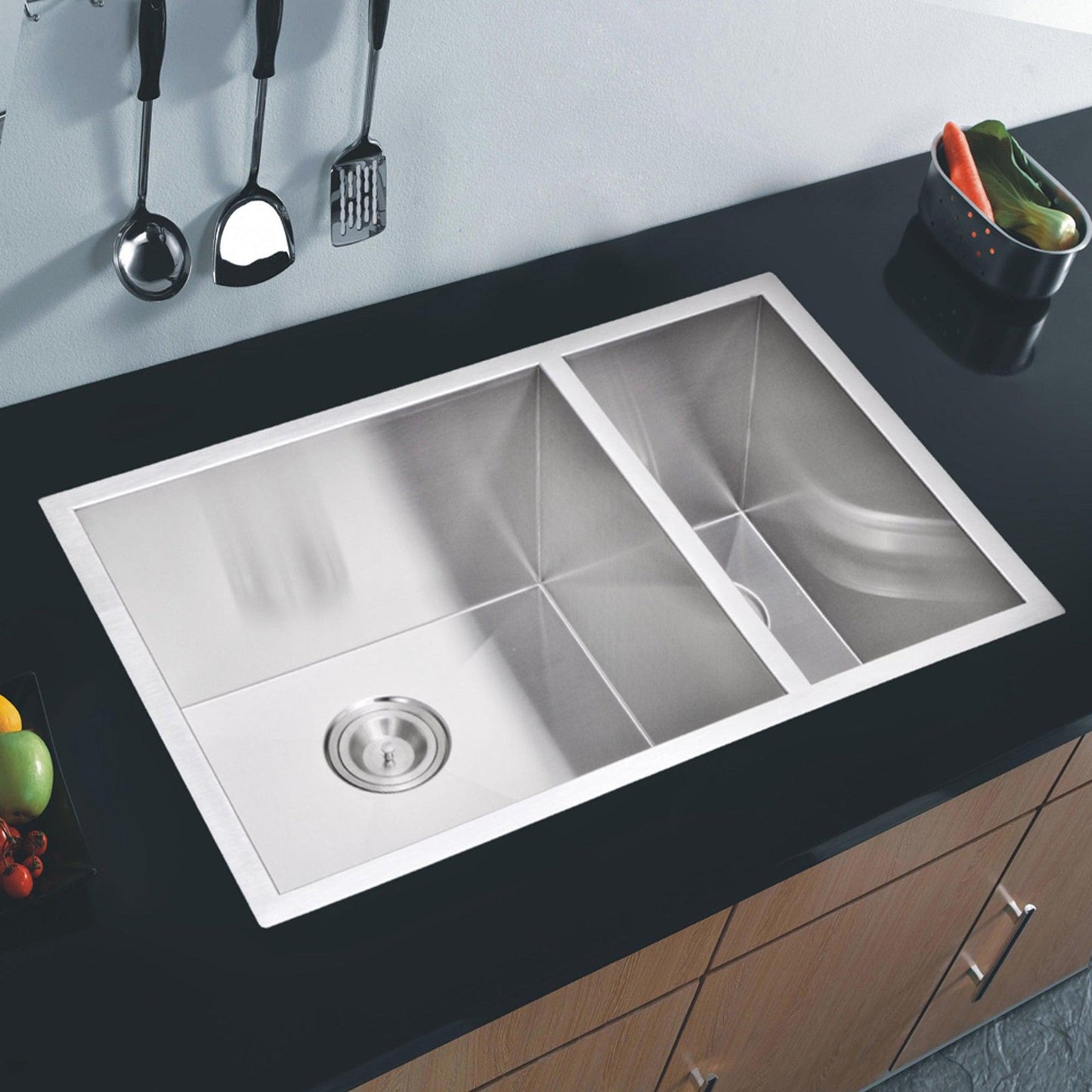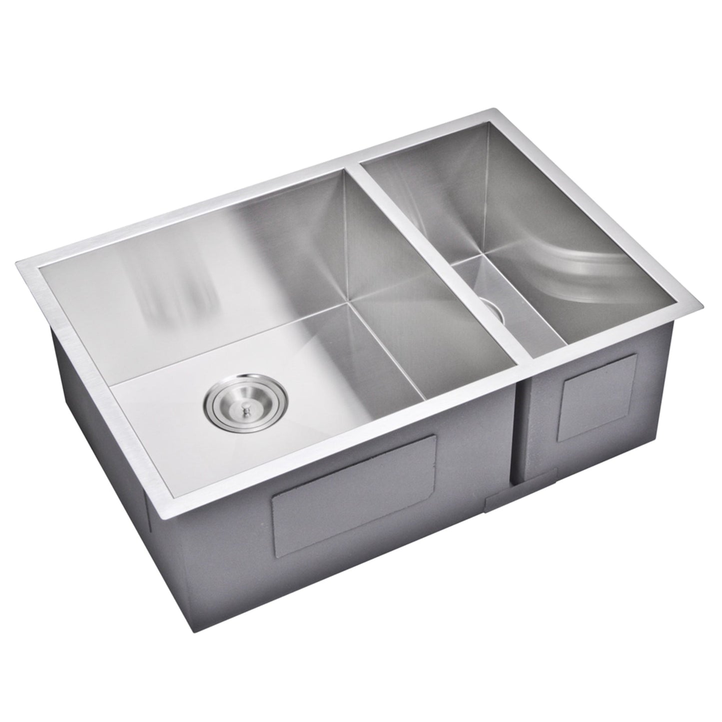 Water Creation Zero Radius 70/30 Double Bowl Stainless Steel Hand Made Undermount 29 Inch X 20 Inch Sink With Drains And Strainers