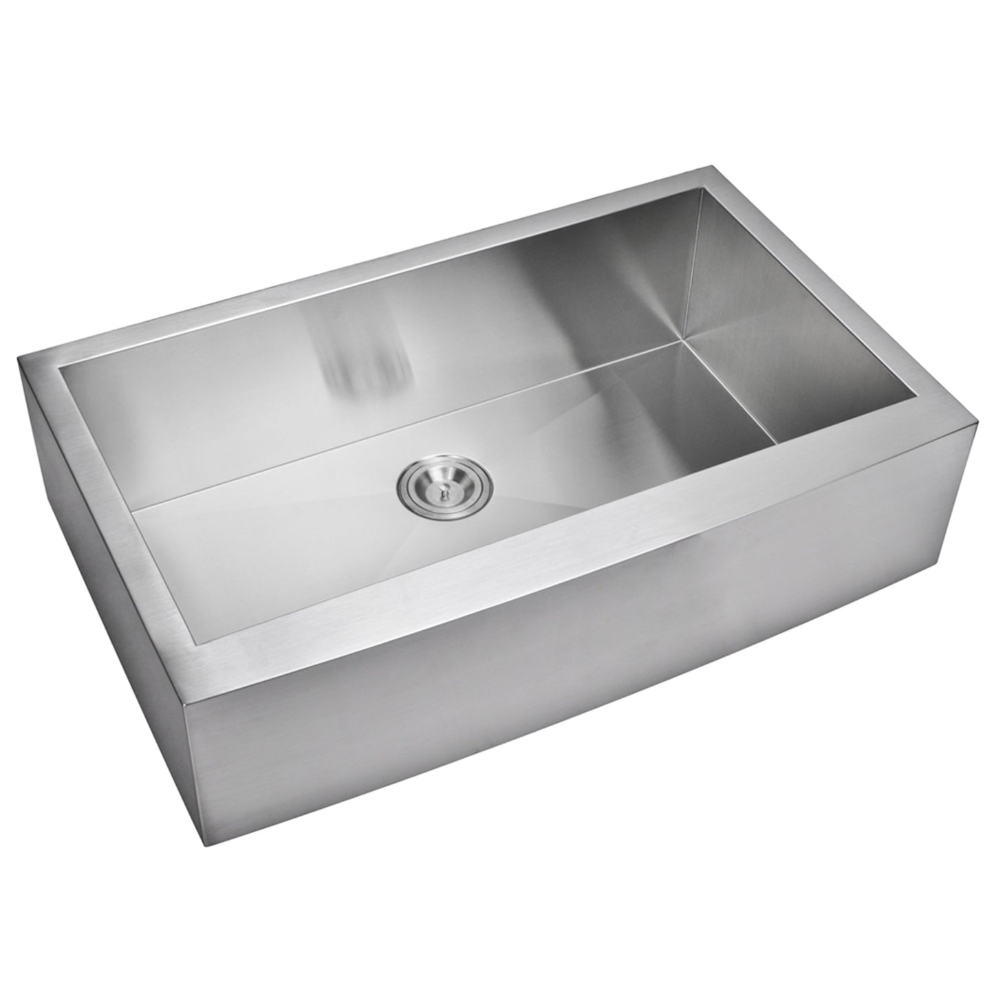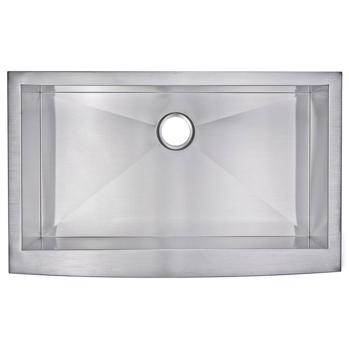 Water Creation Zero Radius Single Bowl Stainless Steel Hand Made Apron Front 36 Inch X 22 Inch Sink With Drain, Strainer, And Bottom Grid