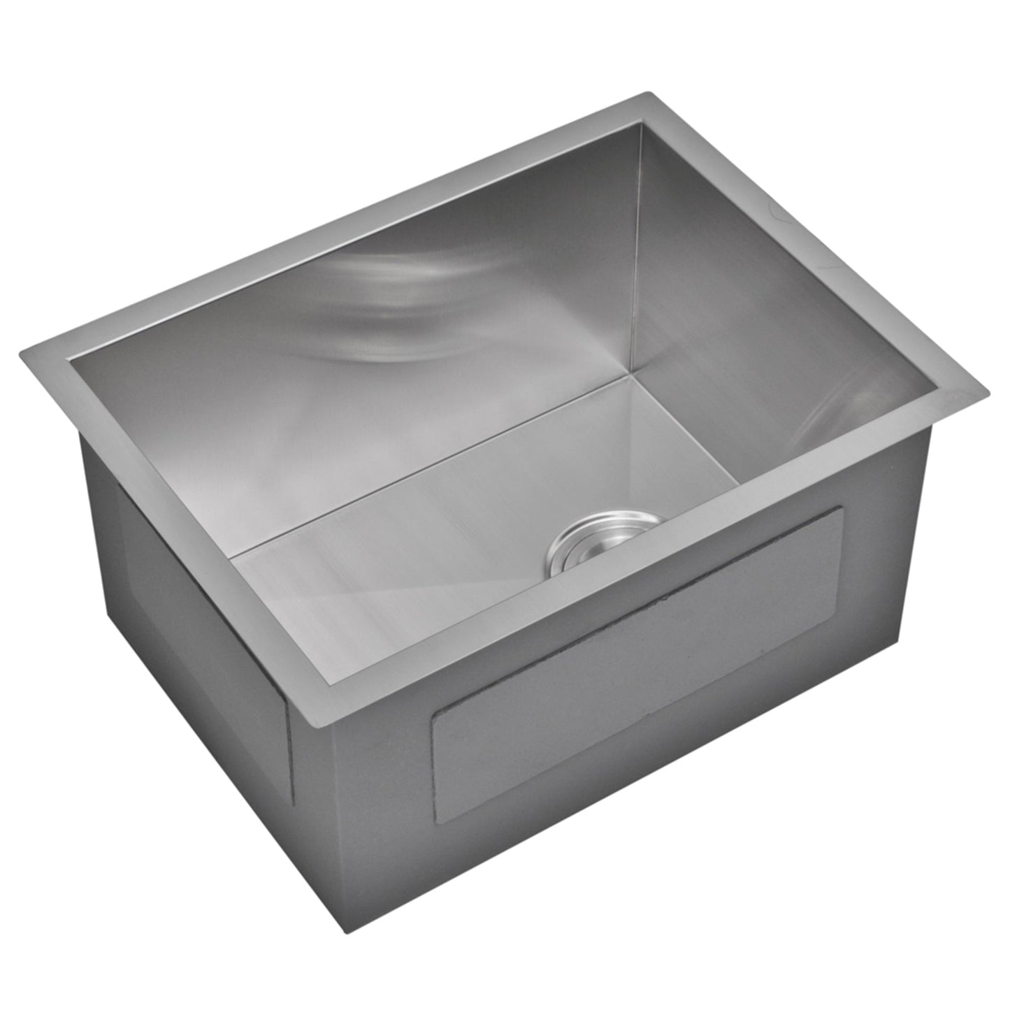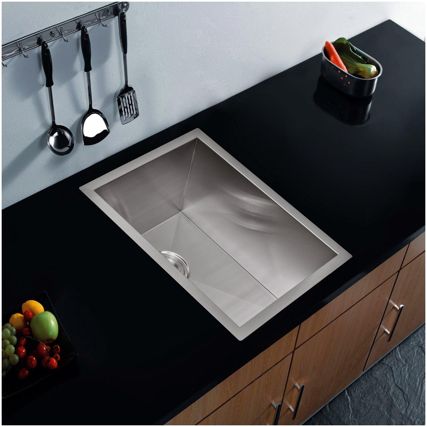 Water Creation Zero Radius Single Bowl Stainless Steel Hand Made Undermount Bar 15 Inch X 20 Inch Sink With Drain, Strainer, And Bottom Grid