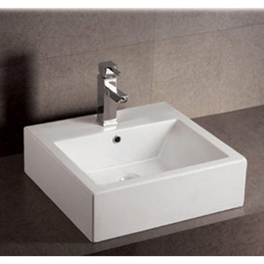 Whitehaus Isabella WHKN1059 White Square Wall Mount Basin With Overflow Single Faucet Hole and Rear Center Drain