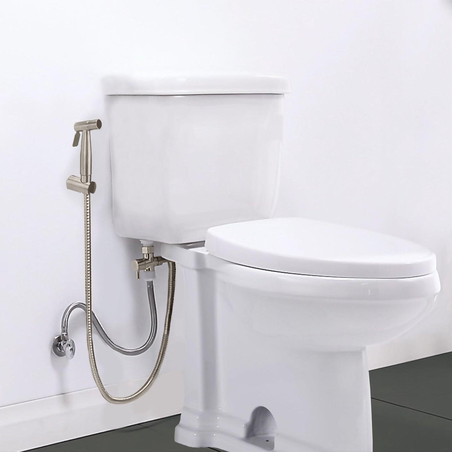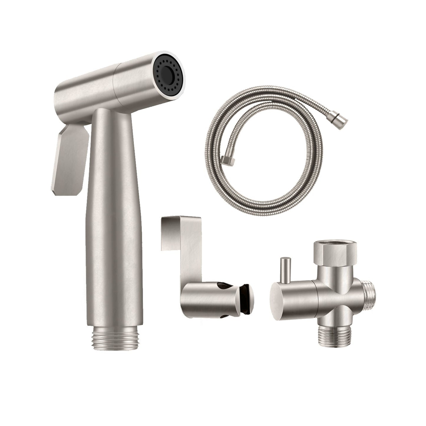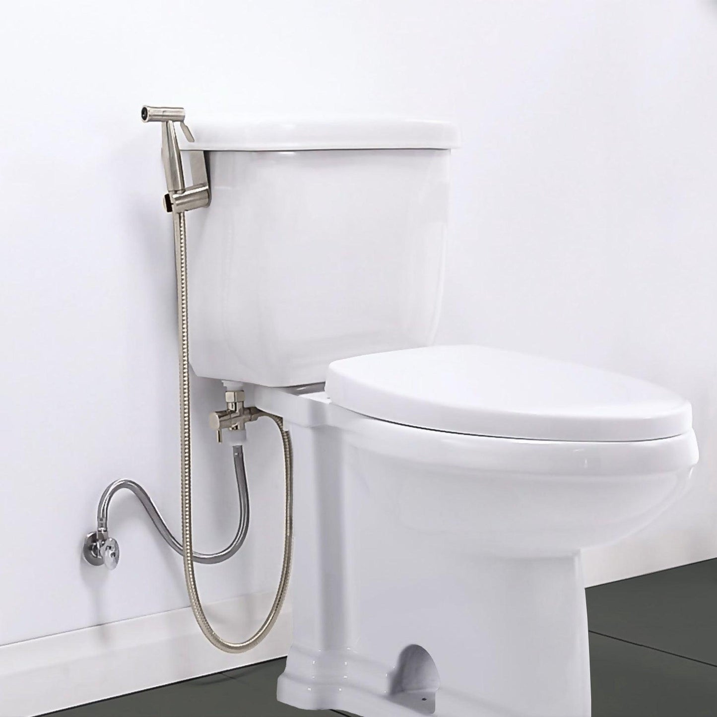 Spahaus Stainless Steel Hand-Held Bidet Sprayer Set is the perfect accessory for any bathroom. The universal T-valve with shut off lever handle works with any standard toilet in the USA. The set includes a 304 stainless steel bidet hose as well as a holder for either a toilet tank or wall mount installation. Spahaus multifunctional Bidet Sprayer is ideal for personal hygiene, toilet maintenance, pet cleaning and many other daily needs.