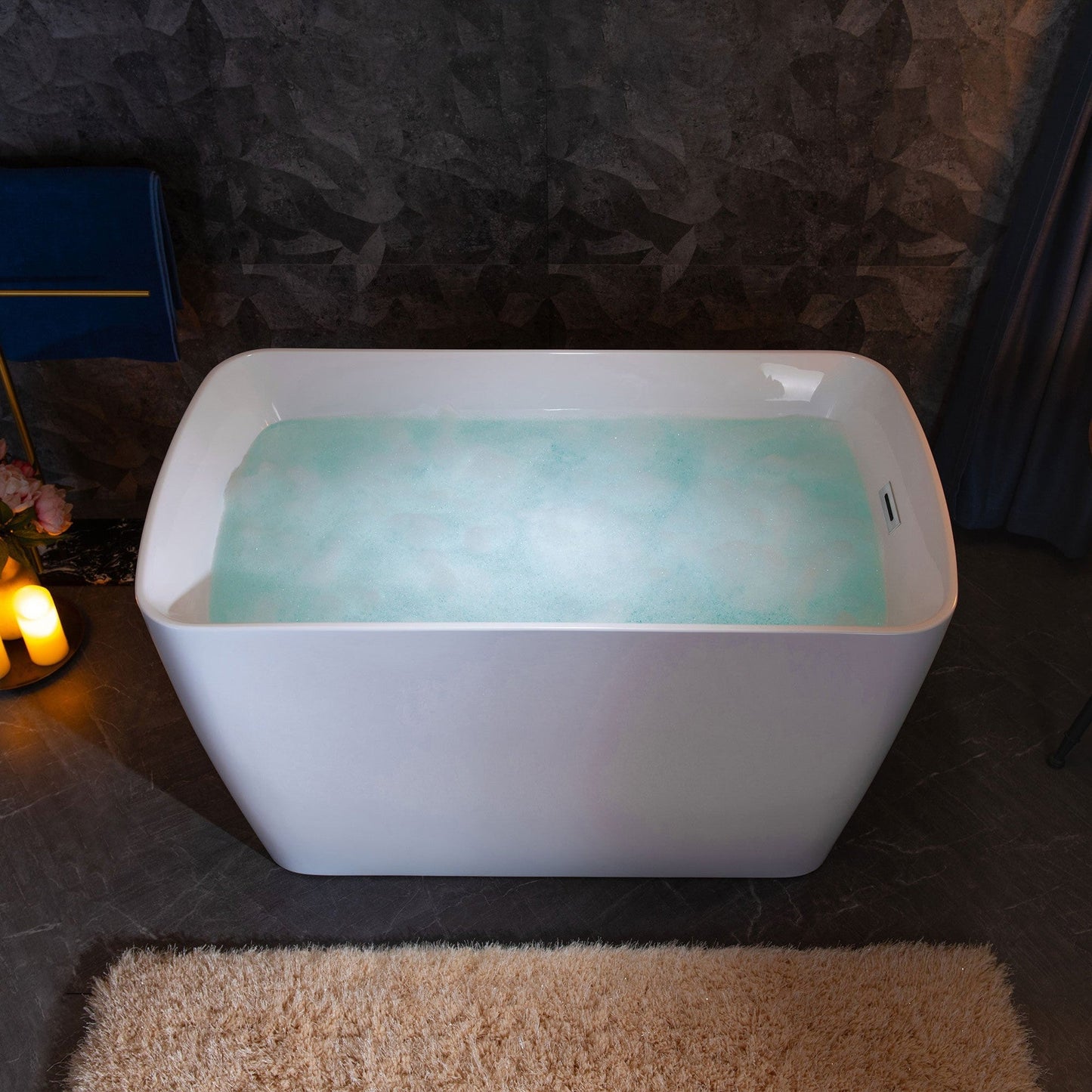 PACKAGE INCLUDED: Acrylic tub, Solid brass construction Chrome pop-up drain, stainless steel construction of Chrome overflow cover, user manual and installation instruction are included.