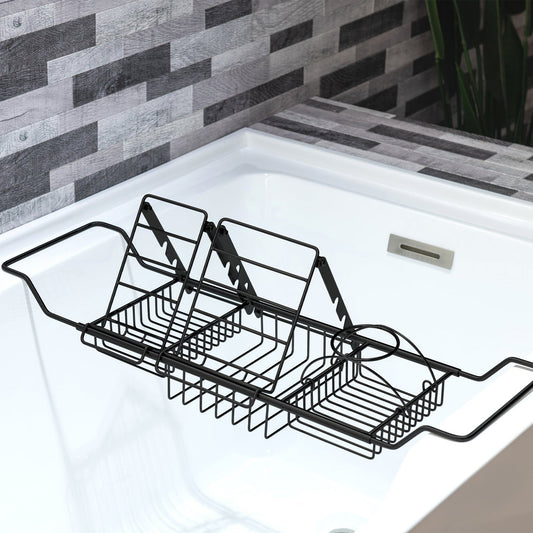 EXTENDABLE TO SIZES: Measure 25" L x 7-3/4" W x 1-4/5" H, this tub caddy tray is compatible with most bathtub models, shelf adjusts from 25" wide to maximum 34" wide, work well with most bathtubs, both Two Sides can be Stretched and Pulled back. DURABILITY: Made of rust resistant 304 grade stainless steel with Matte Black finish, that is anti-rusting and waterproof. The bright luster and simple modern design make your bathroom more refreshed. CERTIFICATION & WARRANTY: Limited 1-year manufacturer's defect; WOODBRIDGE product support team is happy to assist with any sales or product-oriented queries. EASY TO USE: The bathtub caddy tray has 3 brackets, allowing you to easily place iPads, phones, flowers, wine glasses, shower gel, shampoo, soup sponge, candlesticks, or other shower supplies. Easy to install and remove. WONDERFUL BATHING EXPERIENCE: Enjoy pure relaxation and entertainment during the shower period with this well crafted bathtub tray, reading your favorite books or watching videos. PACKAGE INCLUDED: Luxurious bathtub caddy tray x 1 and user manual x 1. |