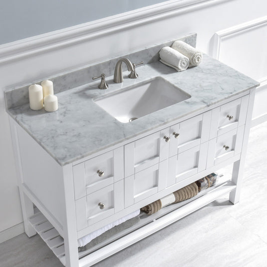 Woodbridge 49" White Carrara Marble Vanity Top With Single Undermount Sink and Pre-drilled 8" Widespread Faucet