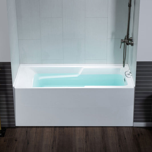 WoodBridge 60" White Acrylic Alcove Rectangular Soaking Bathtub Right Drain Placement With Chrome Pop-up Drain