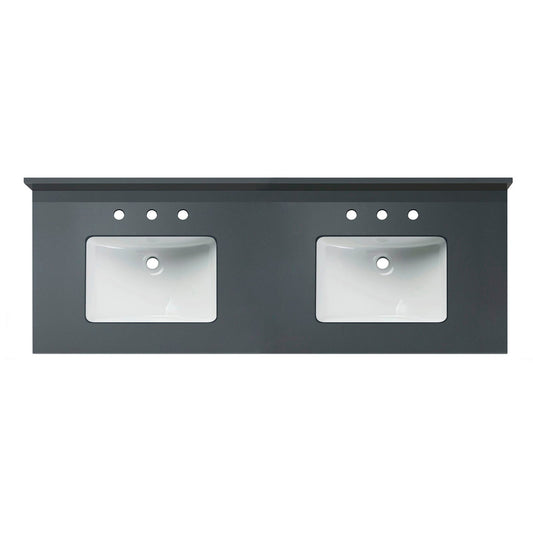 Woodbridge 61" Dark Gray Engineered Stone Vanity Top With Double Undermount Sink and Pre-drilled 3-Hole for 4" Centerset Faucet