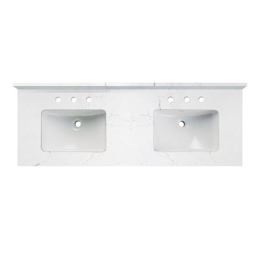 Woodbridge 61" White Fish Belly Engineered Stone Vanity Top With Double Undermount Sink and Pre-drilled 3-Hole for 8" Widespread Faucet