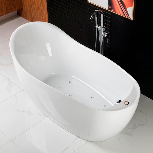 WoodBridge 67" White Deluxe Air Bubble Freestanding Bathtub