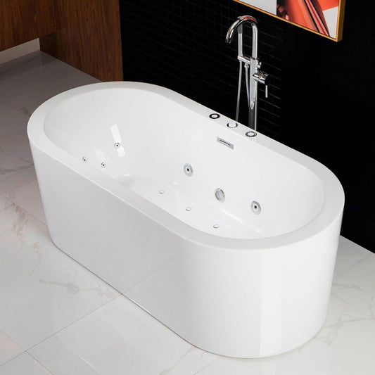 WoodBridge 67" x 32" White Whirlpool Water Jetted and Air Bubble Freestanding Bathtub