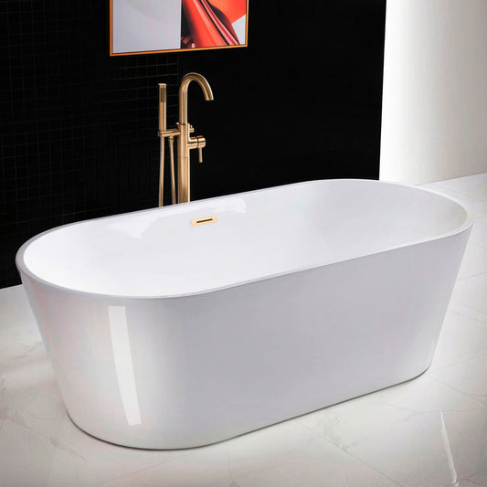 WoodBridge 71" White Acrylic Freestanding Contemporary Soaking Bathtub With Brushed Gold Drain and Overflow