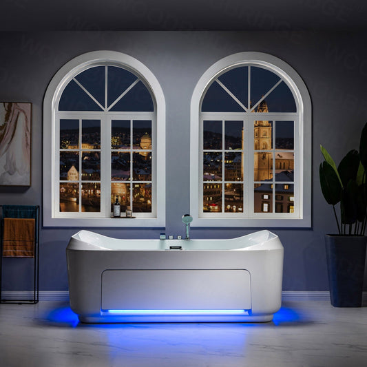 WoodBridge 71" White Acrylic Freestanding Massage Hydrotherapy Bathtub With Inline Heater