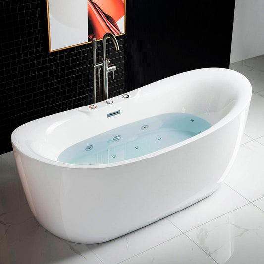WoodBridge 71" White Whirlpool Water Jetted and Air Bubble Freestanding Bathtub