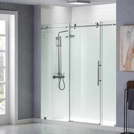 WoodBridge 72" W x 76" H Clear Tempered Glass Frameless Shower Door With Polished Chrome Hardware Finish