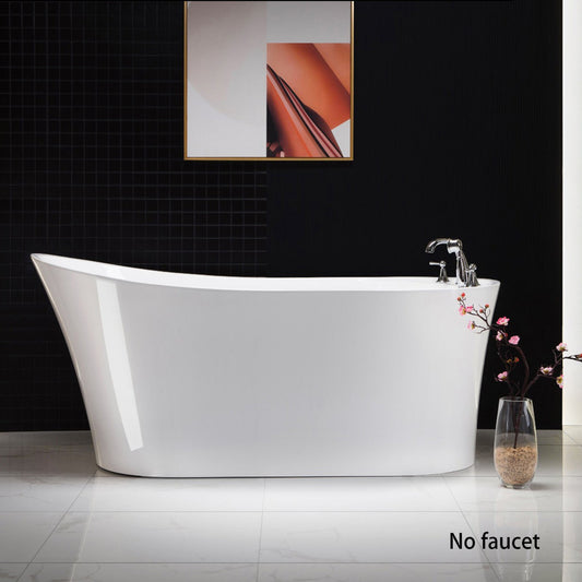 WoodBridge B0083 59" White Acrylic Freestanding Soaking Bathtub With Brushed Nickel Drain and Overflow